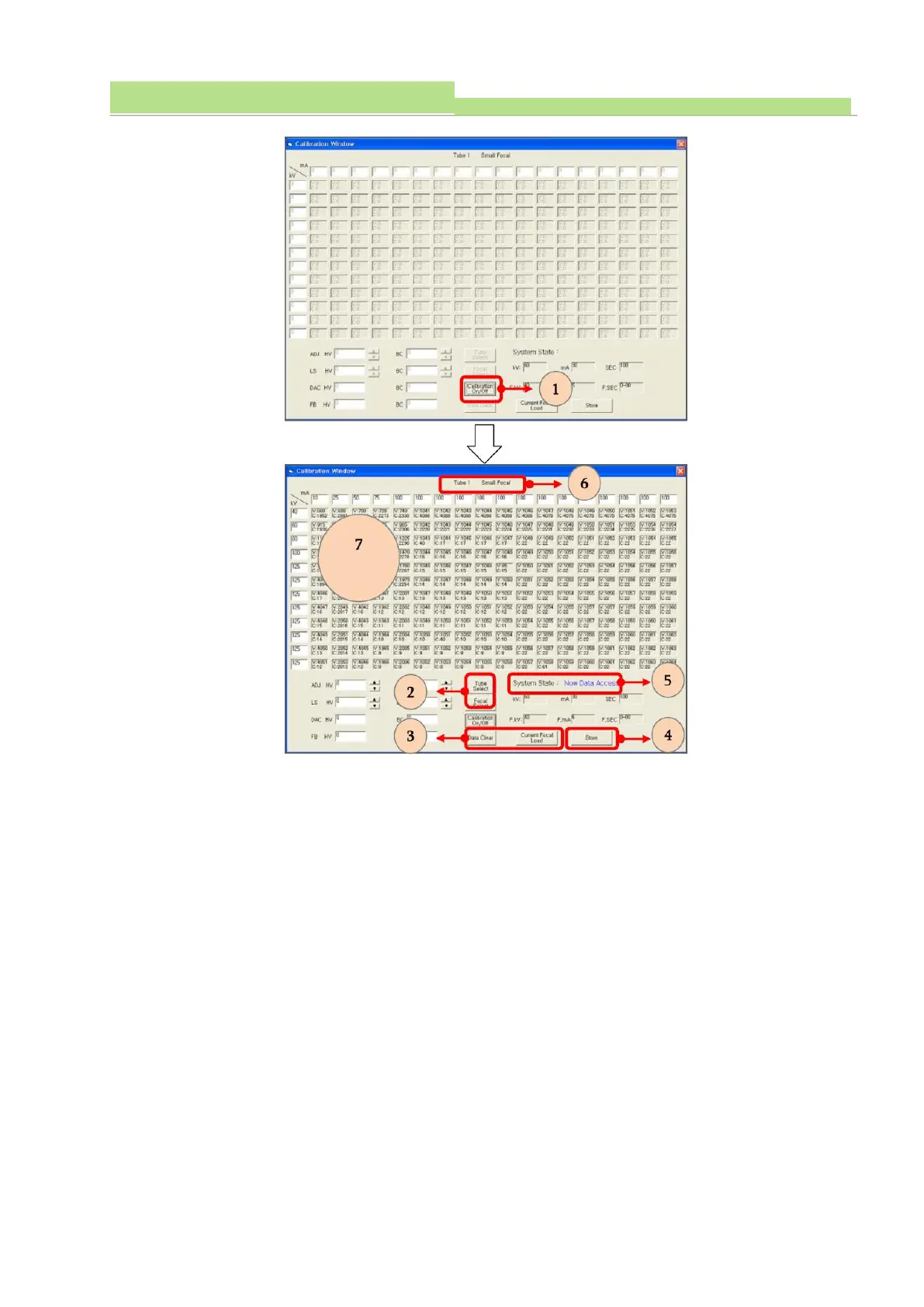 ● Click “Calibration On/Off”(see No 1of the above fig).