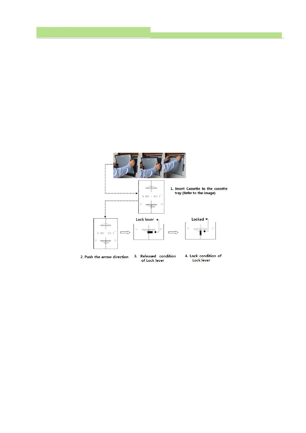 (3) Lock the lever to join the cassette into the tray hard.
