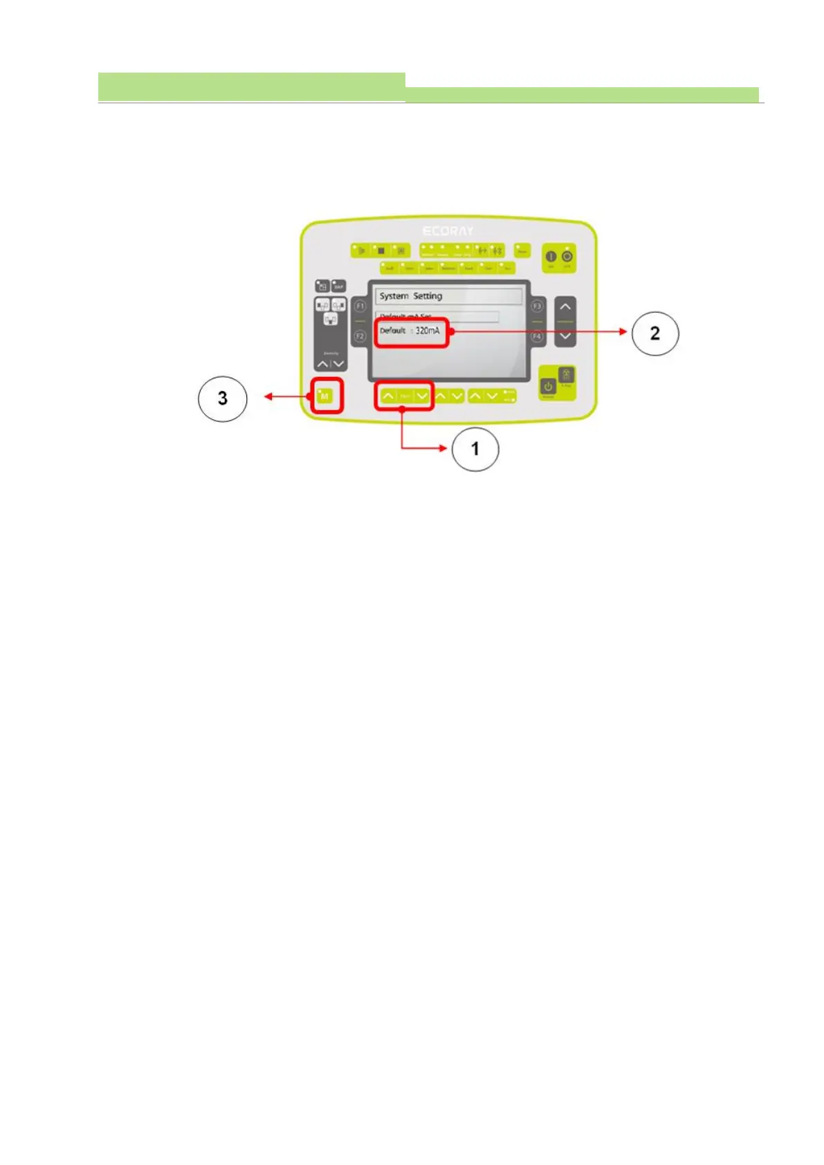 ● Entering by Default mA Setup menu, pushing “KV Up & Down Switch” (Picture 1), and set up Default