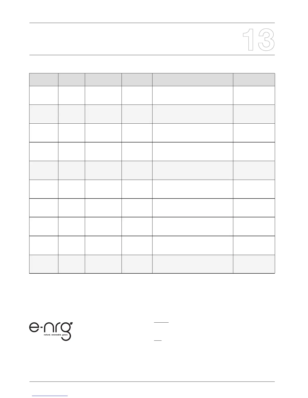 NOTE: These values are indicative only and may vary depending on the model purchased and installation and the country where the e-NRG