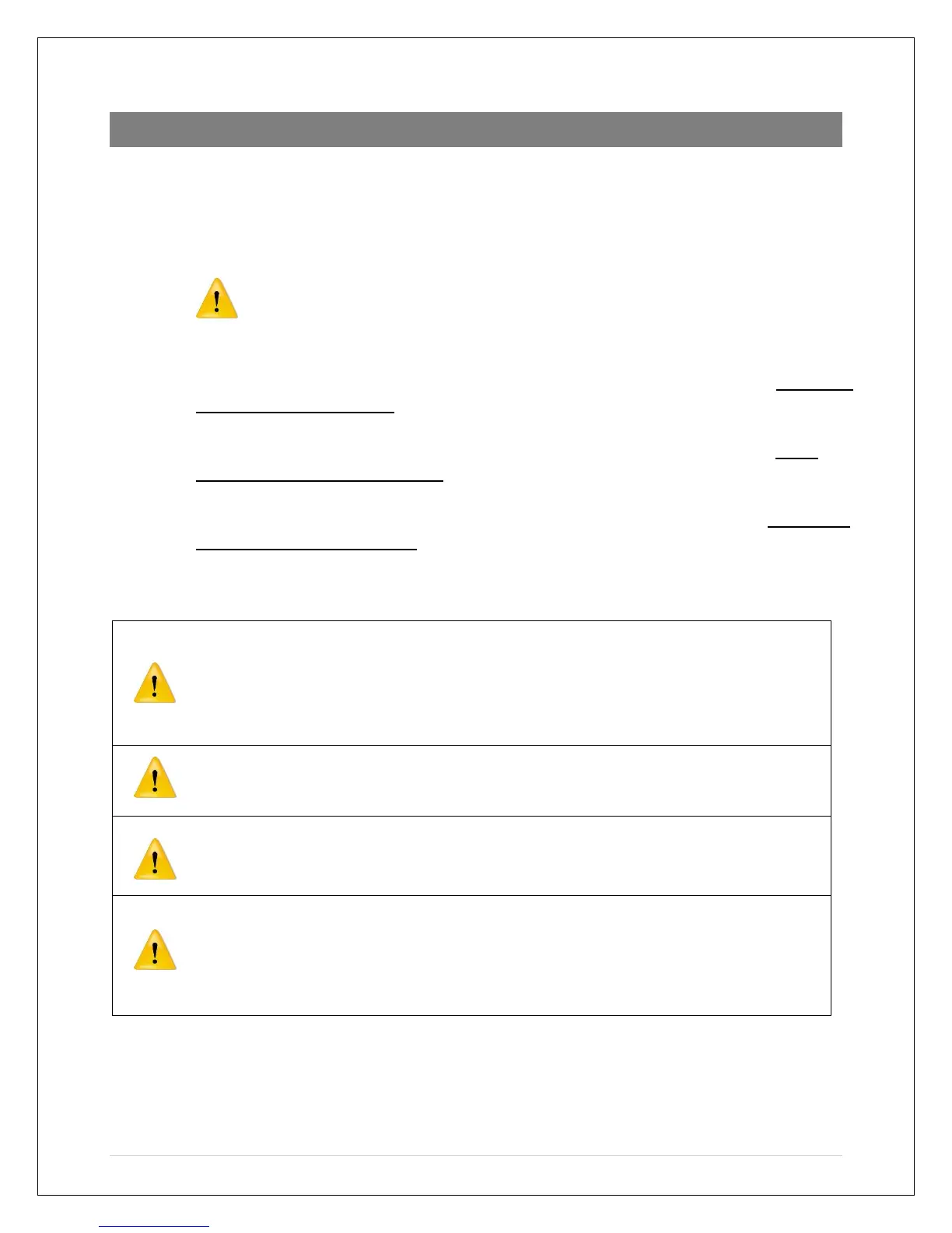 WARNING - FIRE OR ELECTRICAL HAZARD. Failure to follow the safety warnings