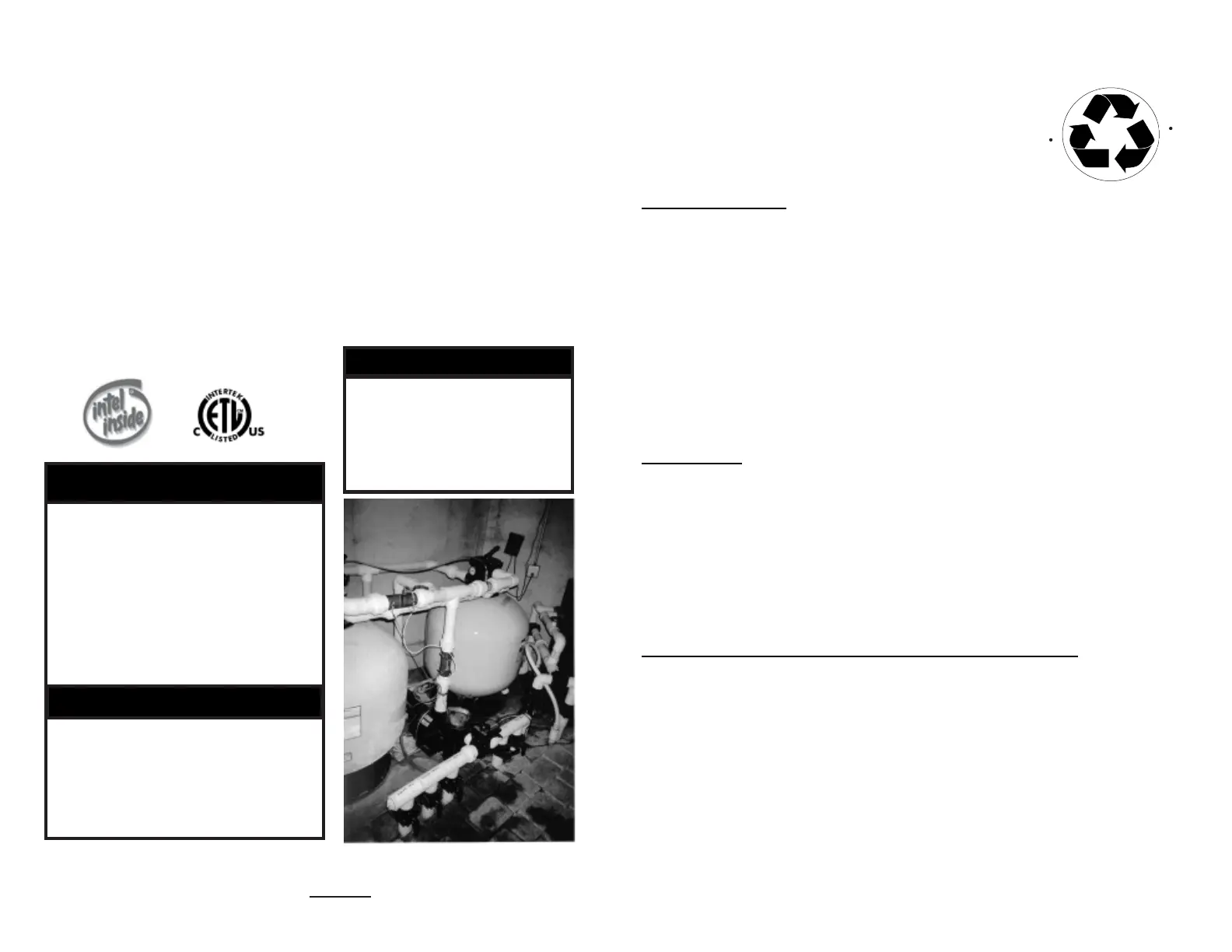 • Use of crushed glass filter media will lower your consumption of chlorine