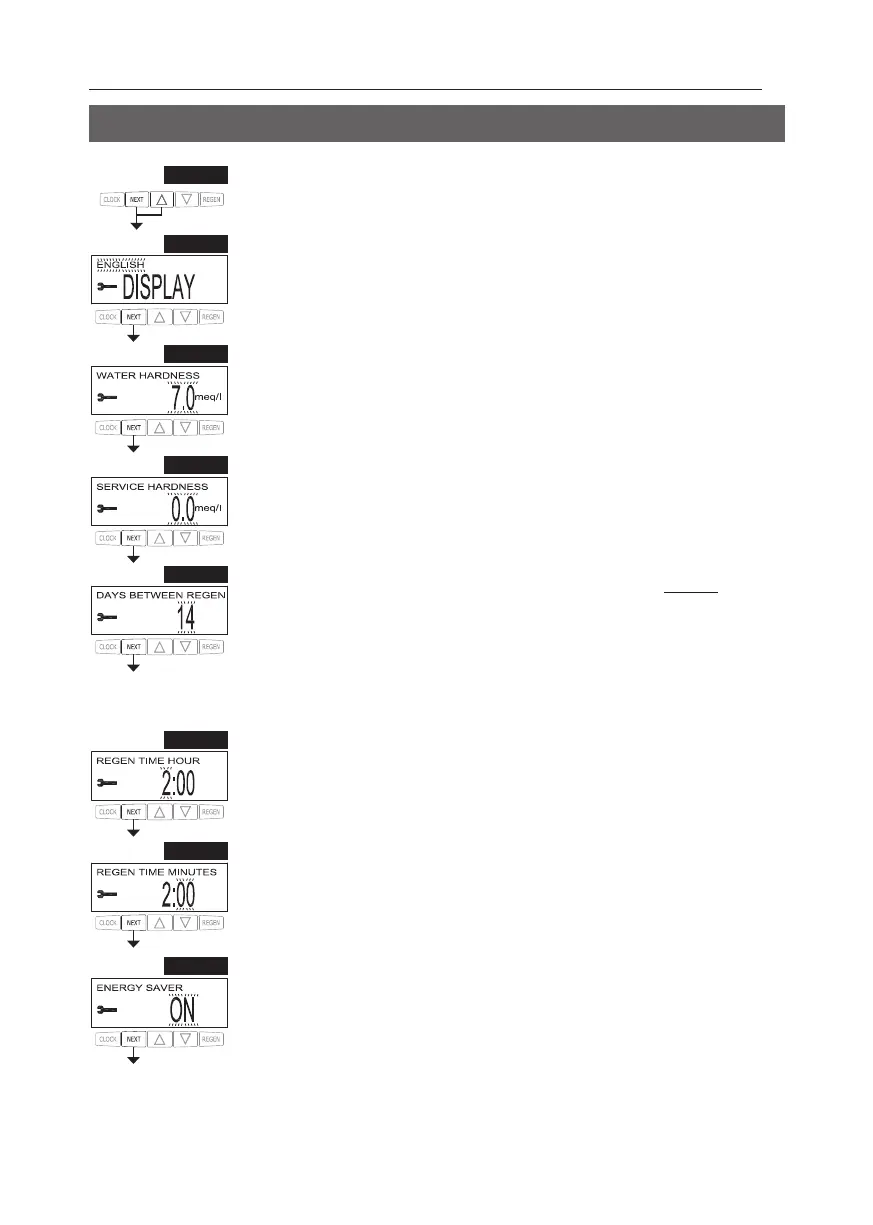 meq/l, PPM, or dH° using ▼ or ▲. This display will not appear if “FILTERING” is selected in Step