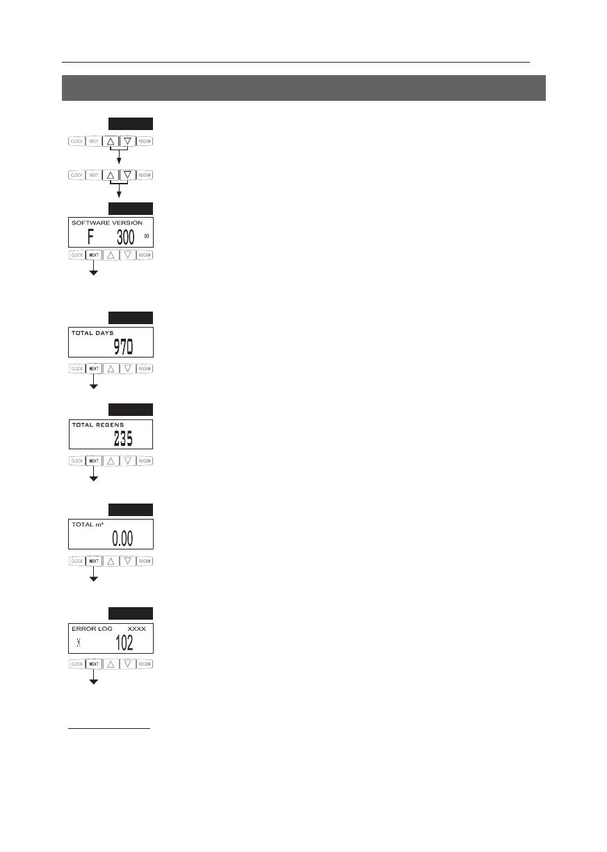 STEP 5VH – Volume, total used since start-up: This display shows the total cubic meters treated since