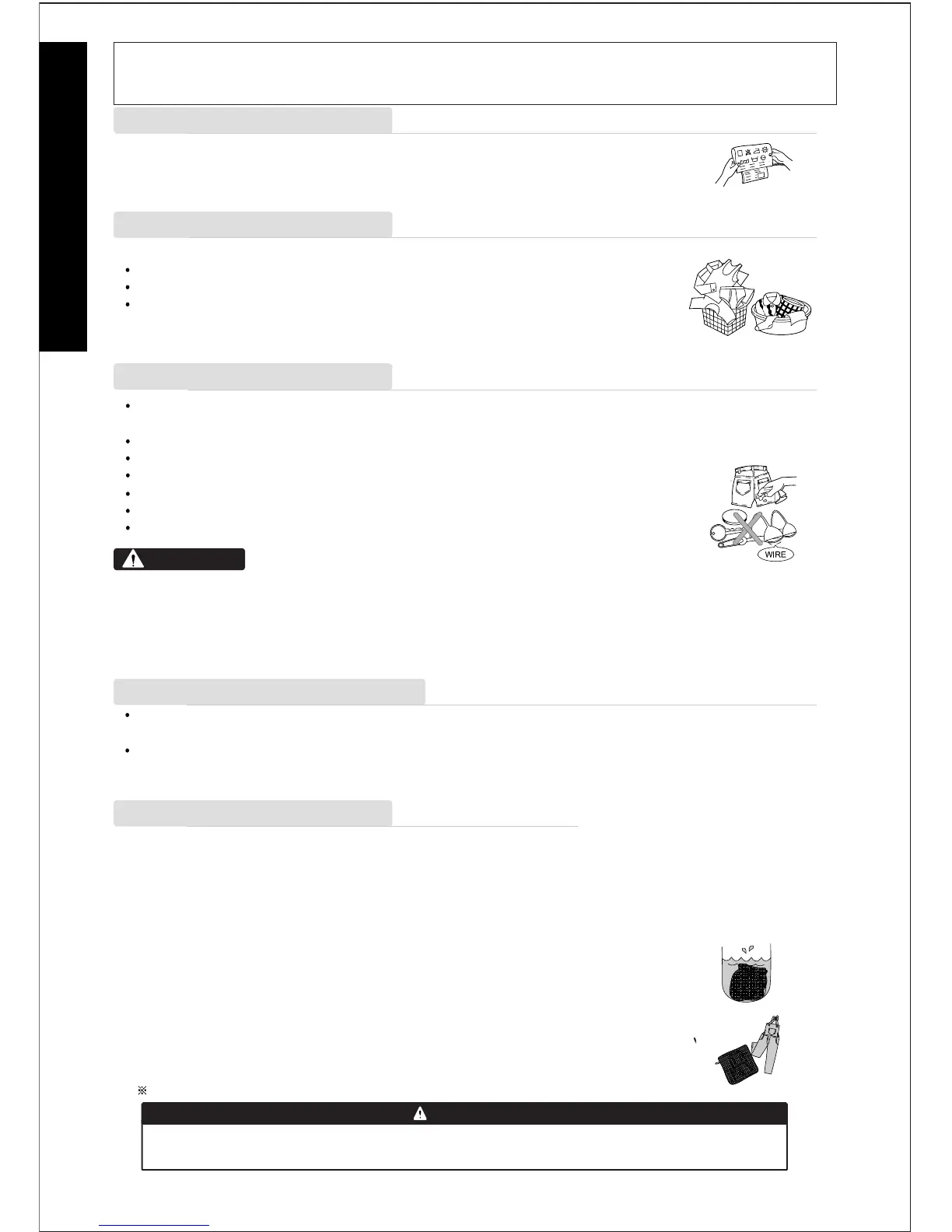 Remove belts, under wires, etc. to prevent damage to the machine or your clothes.