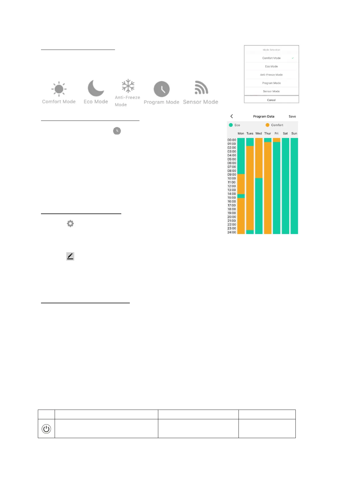 which you can set to Comfort or Eco temperature.