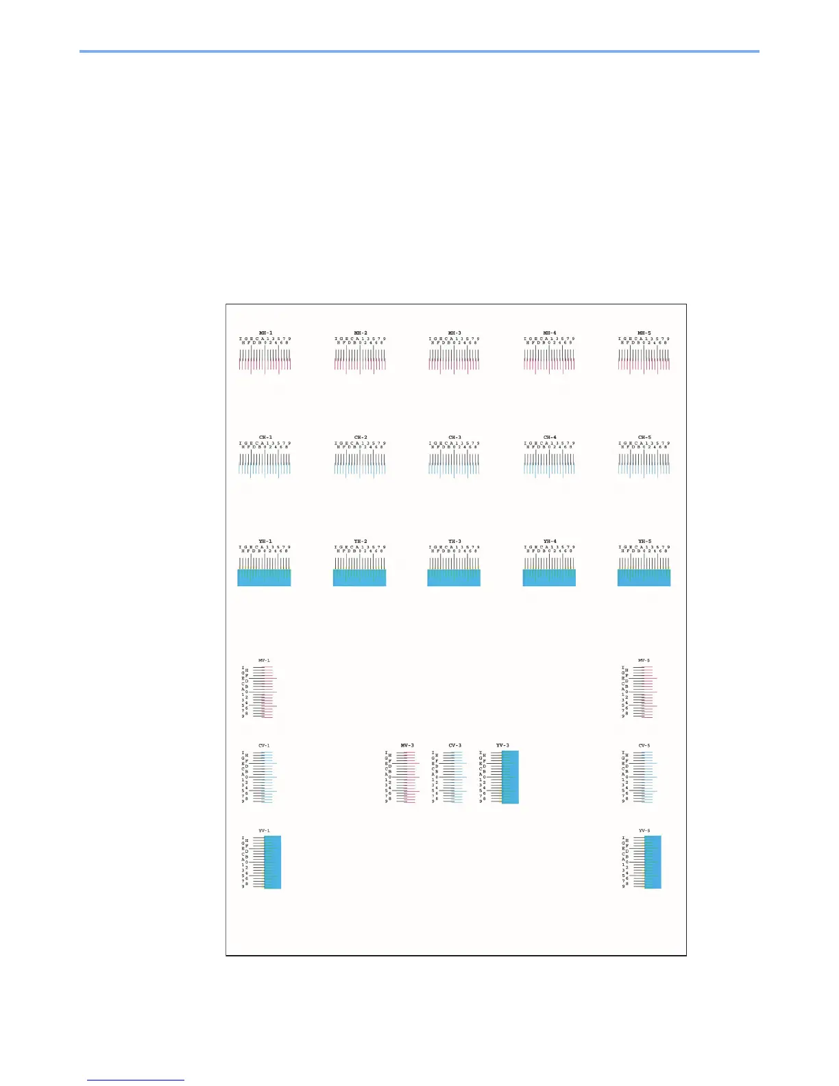 A chart is printed. On the chart, for each of M (magenta), C (cyan) and Y (yellow), charts for H-