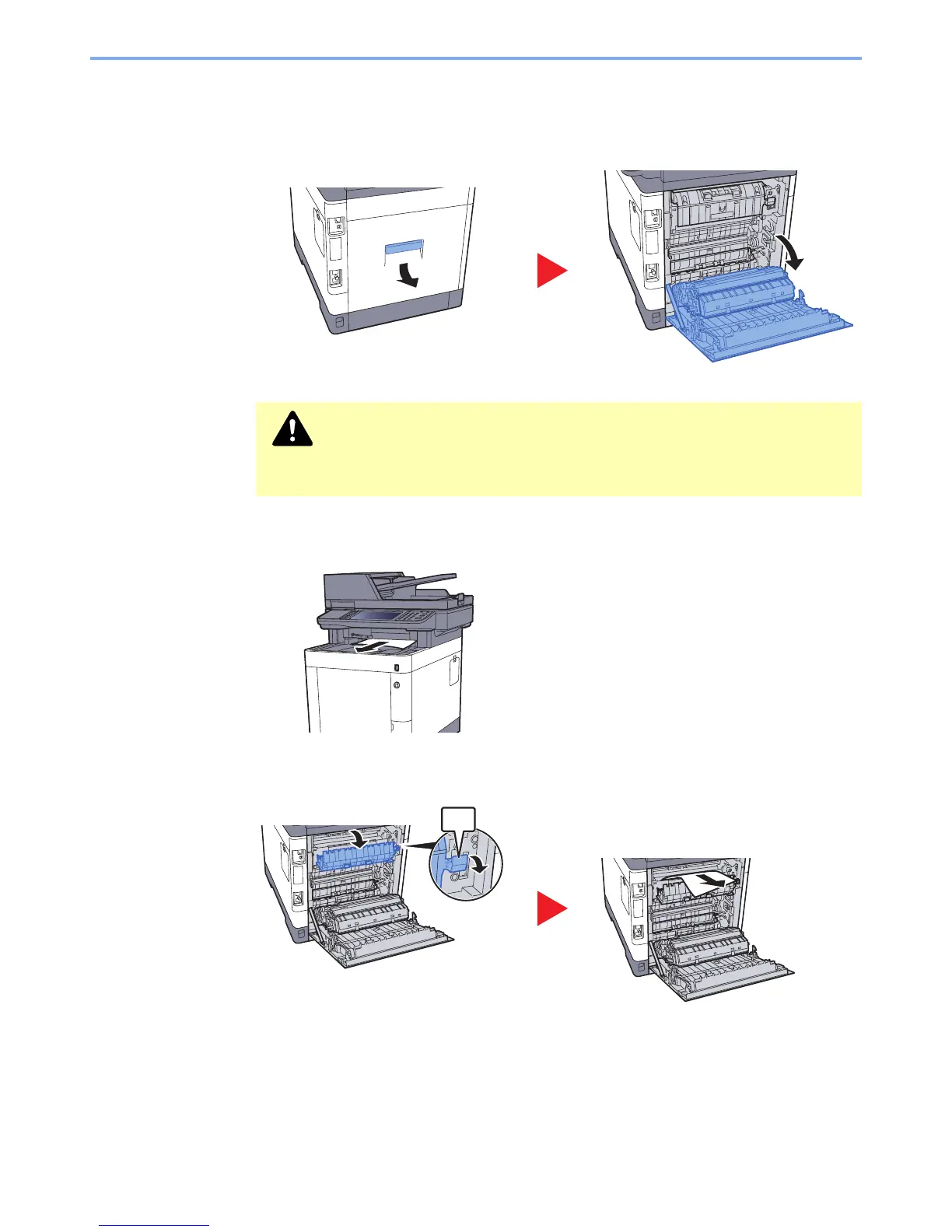 Some parts are very hot inside the machine. Exercise caution as there is a risk of
