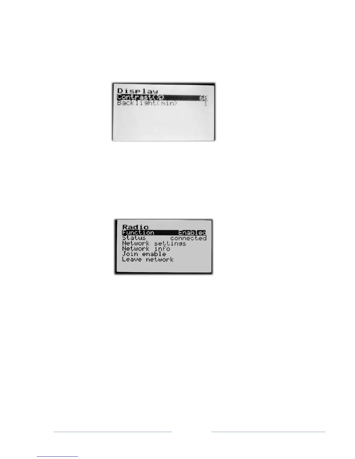 Display Contrast and Backlight intensity can be adjusted from the