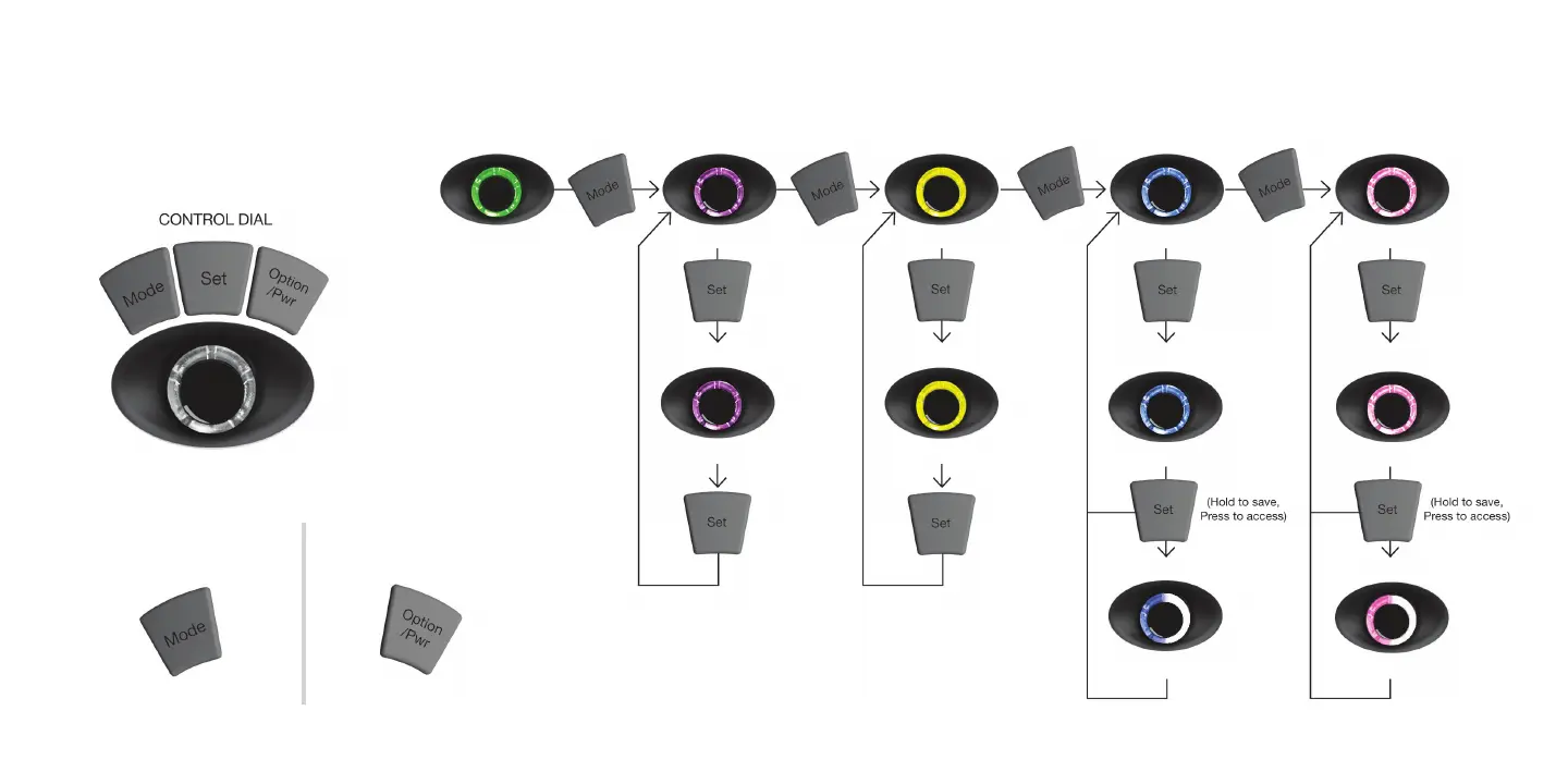 LED bar will indicate change between modes.