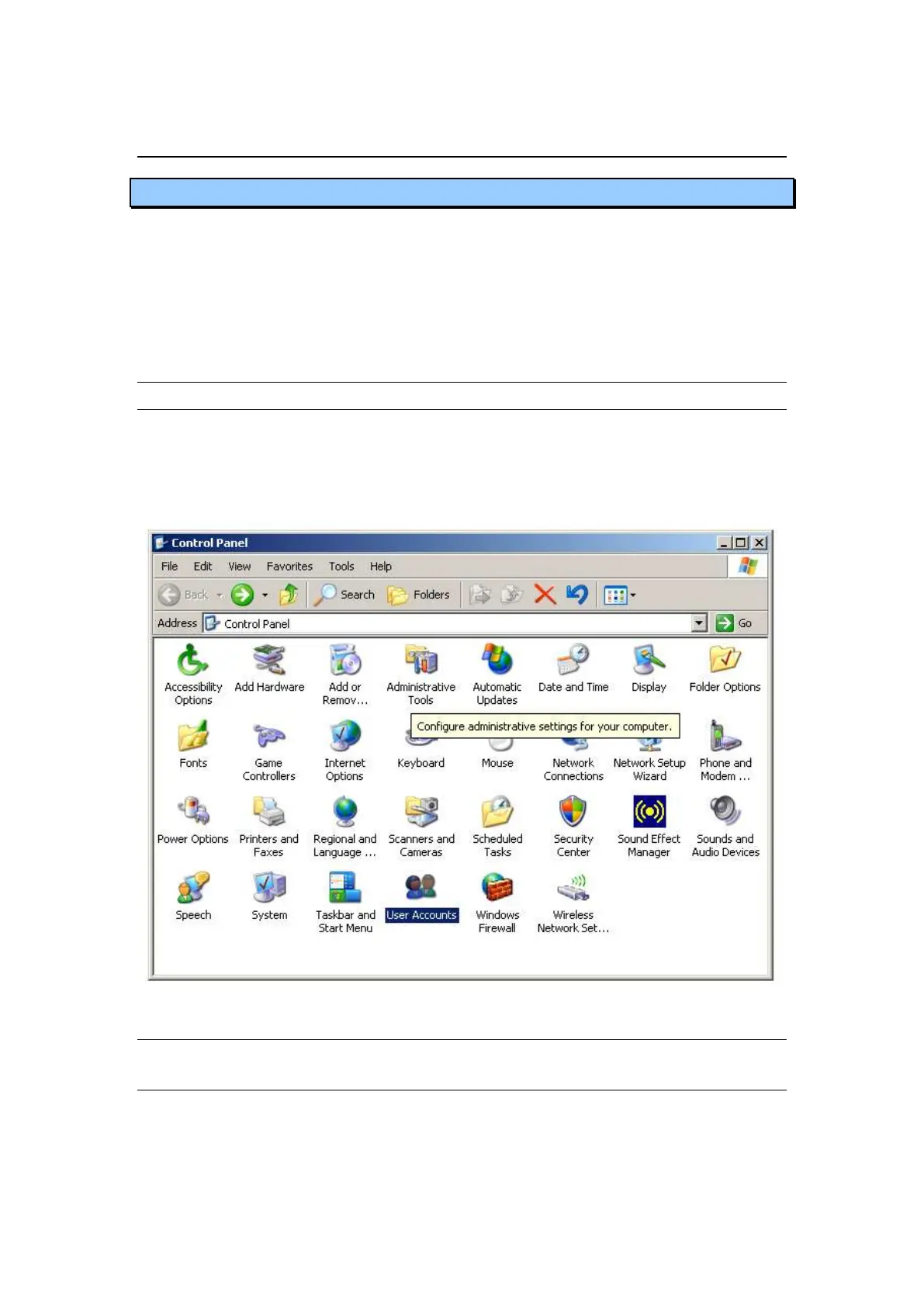 the Control Panel and double click on User Accounts as shown in Figure 5. Within