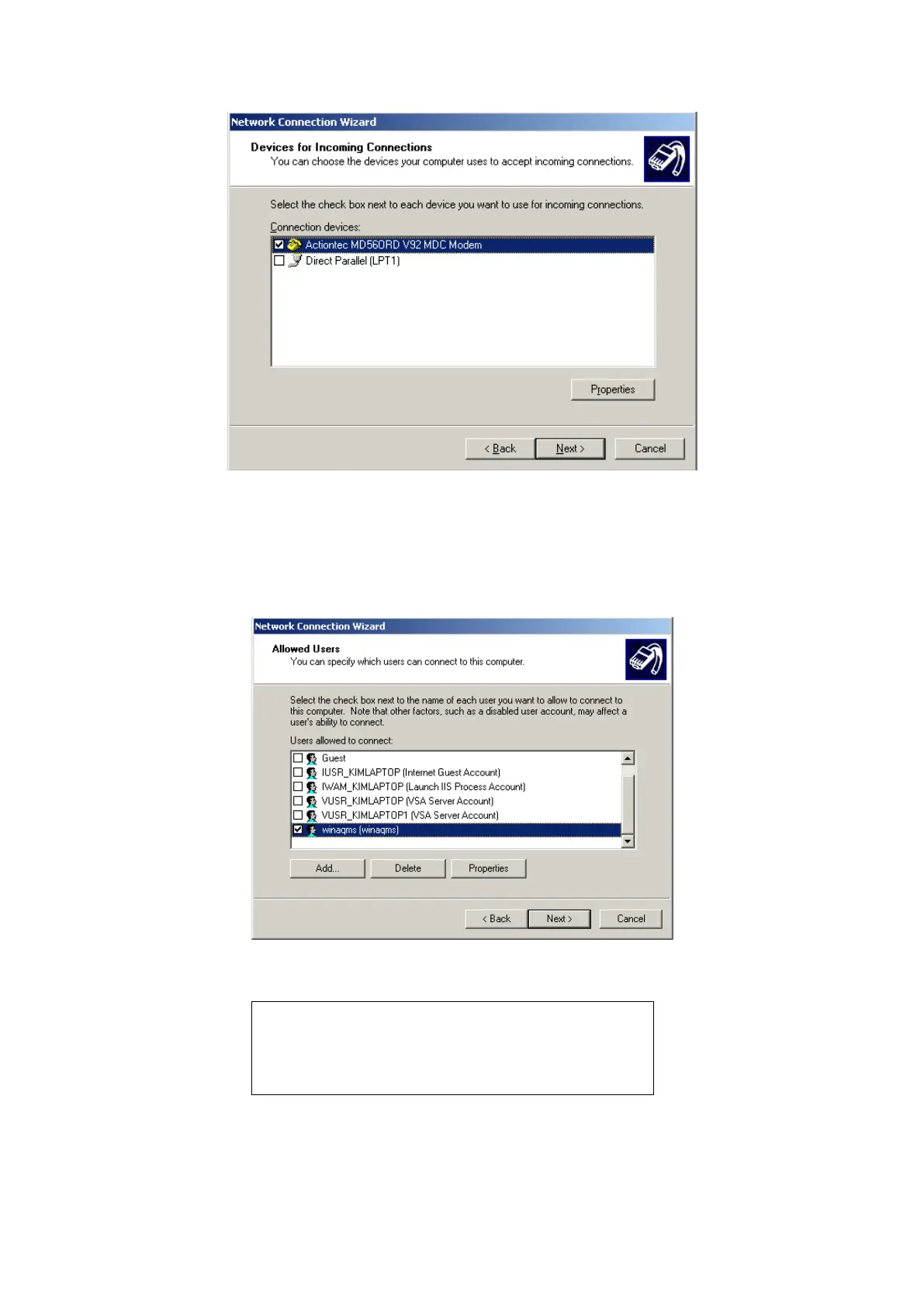 The next window will ask about Virtual Private Connections. Do not allow virtual