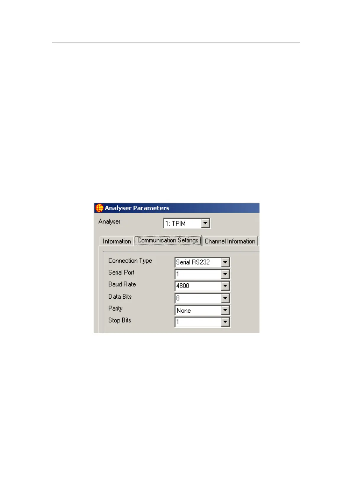 Figure 24 Communication Settings in Analyser Parameters