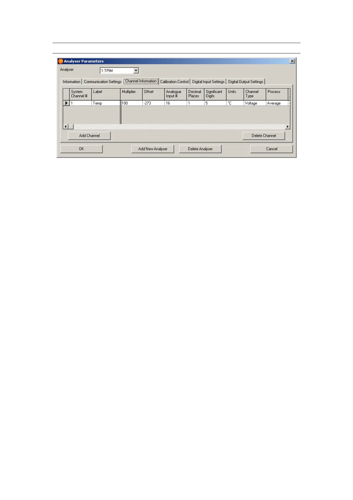 analyser. To add a channel to the system click on the Add Channel button. To remove