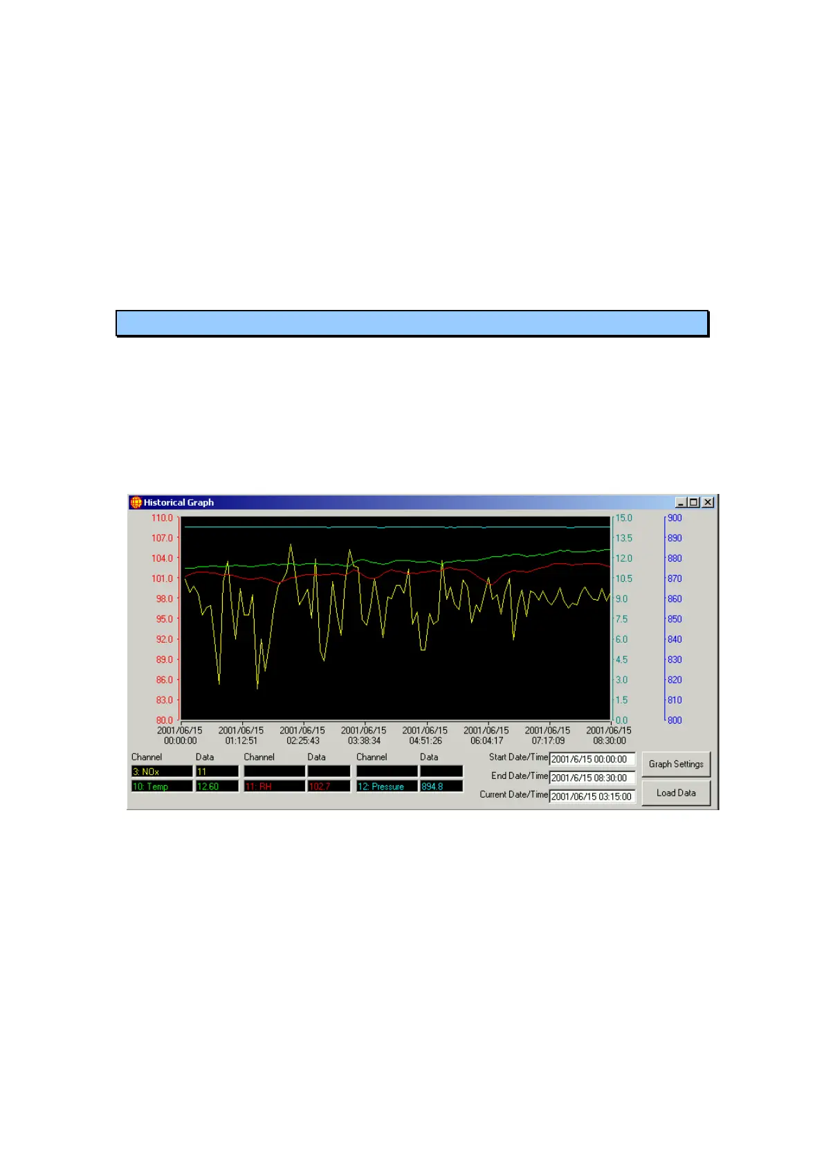 of the six plots of channel data can be configured individually to suit the needs of the