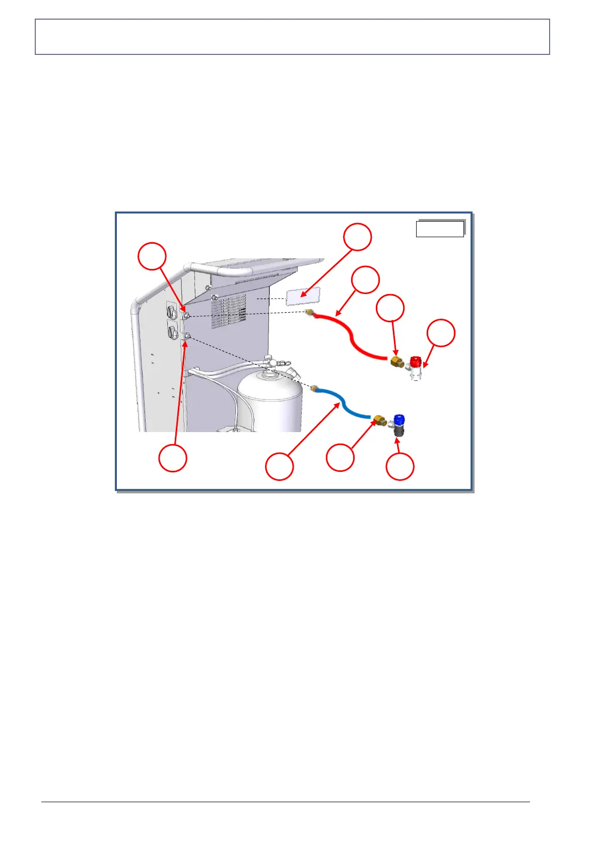 3. Fit the blue hose (2) on the LP fitting of the machine (7)