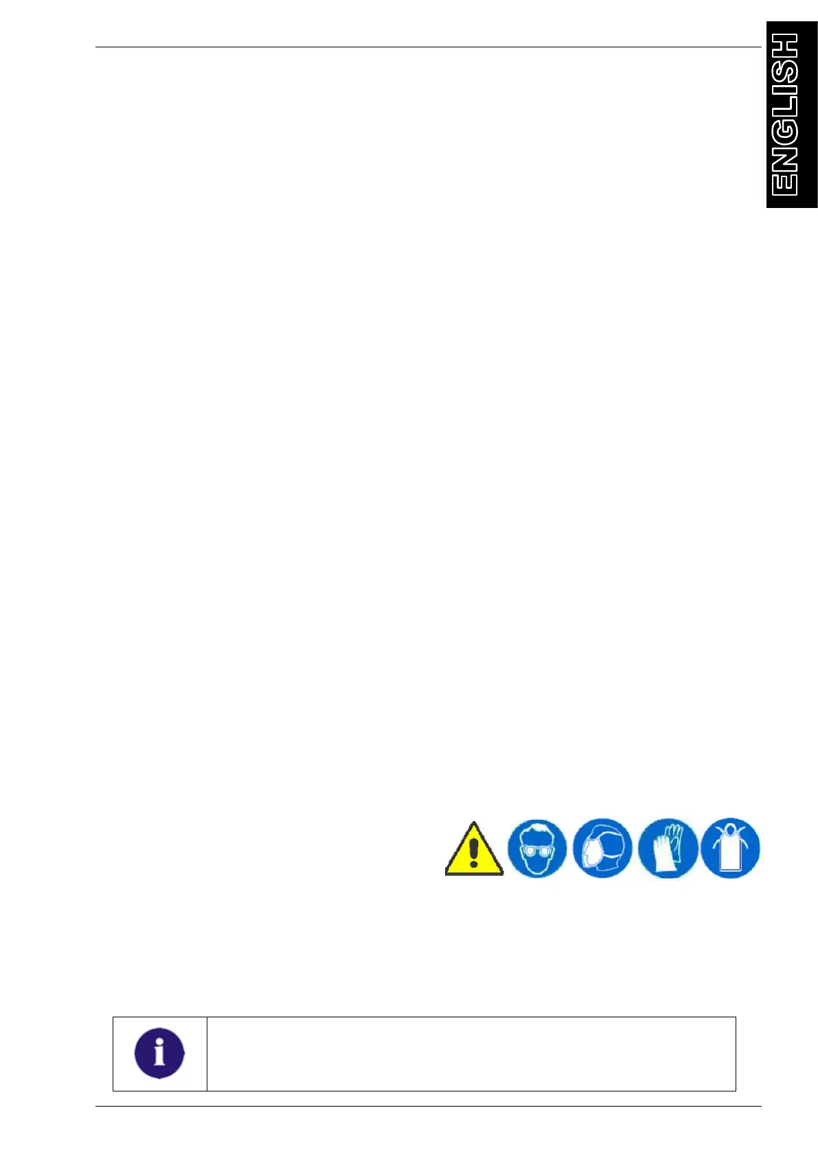 The operator must wear safety glasses, gloves and suitable clothing to work , contact with