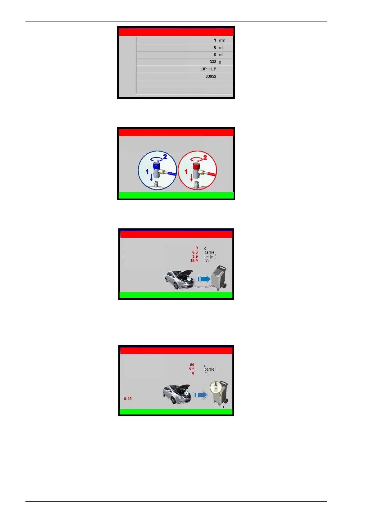 Connect and open the coupling to the A/C system, then press OK, press BACK to return back.