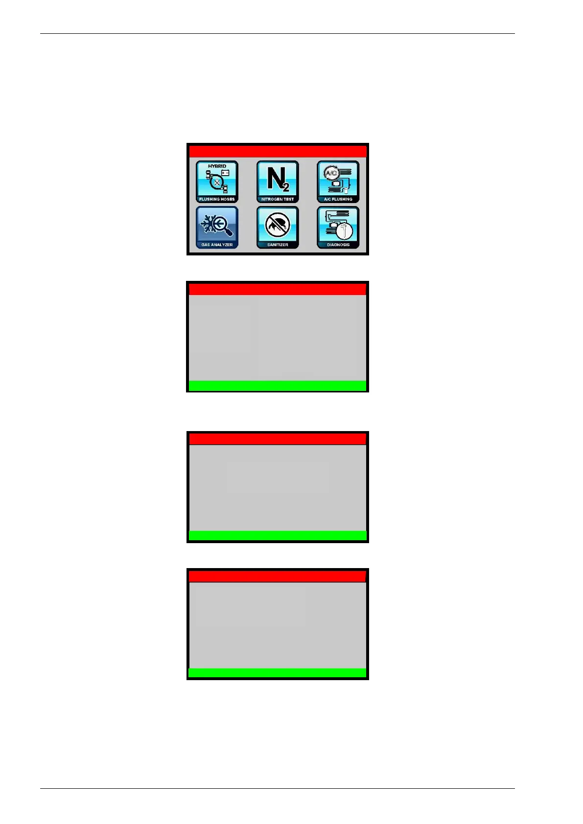 Then select FLUSHING HOSES, the following screen will be displayed: