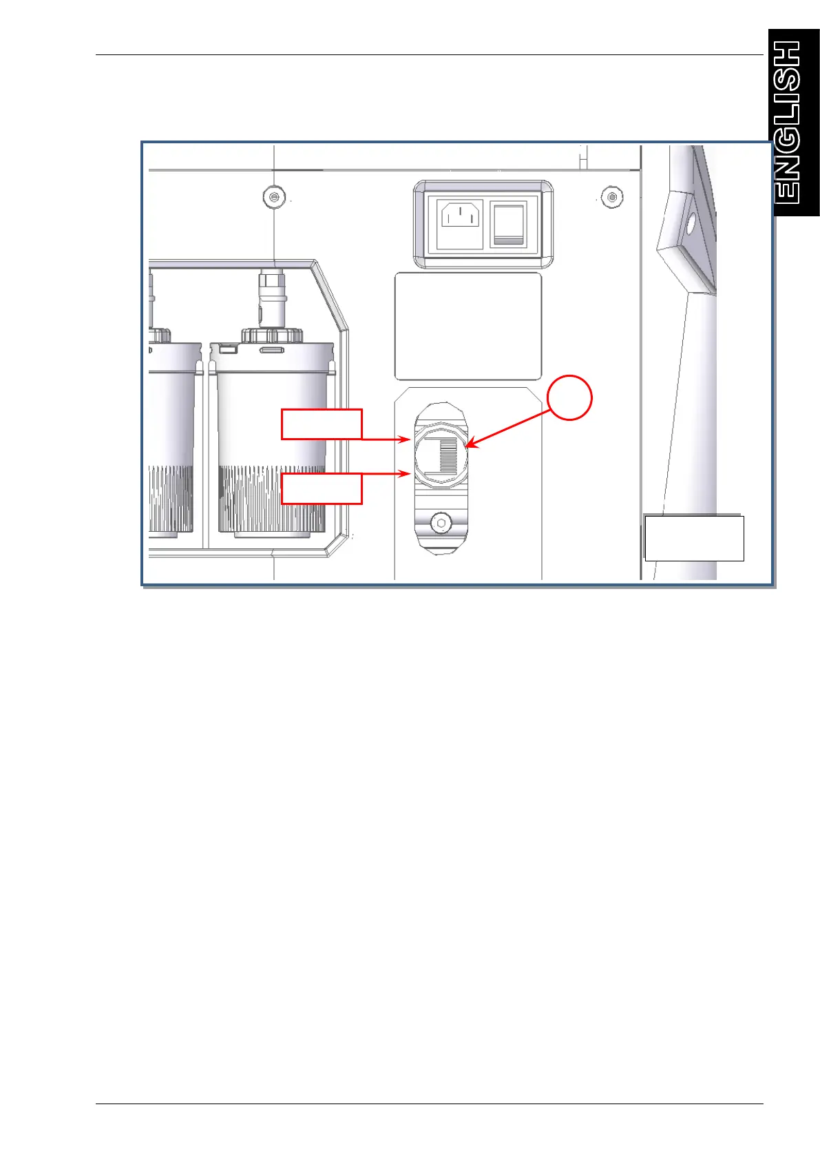 Check that the vacuum pump oil level indicator (ref.3, Fig.14) shows at least one-half full. If