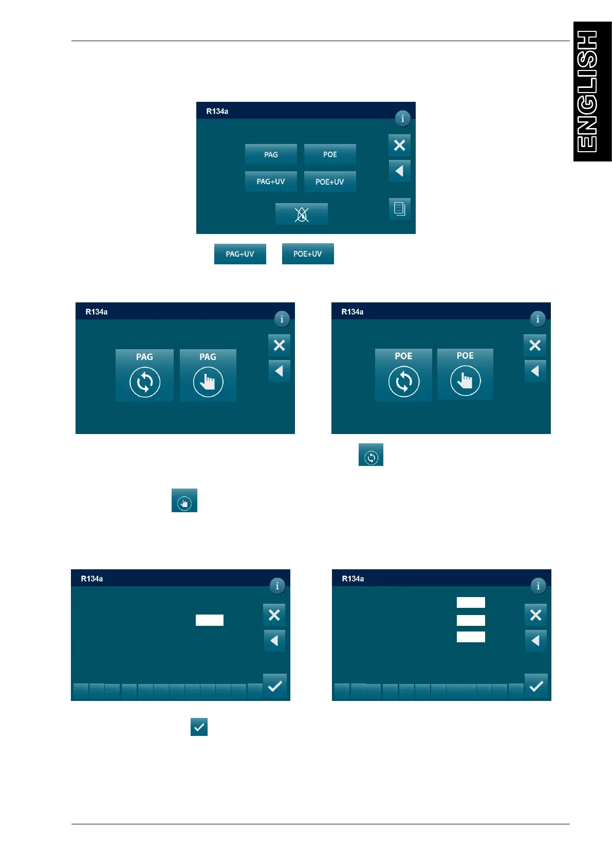In the OIL-UV INJECTION sequence press the oil type required PAG+UV or POE+UV