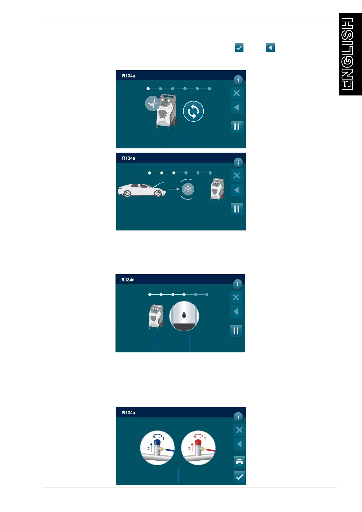 Connect and open the coupling to the A/C system, then press , press to return back.