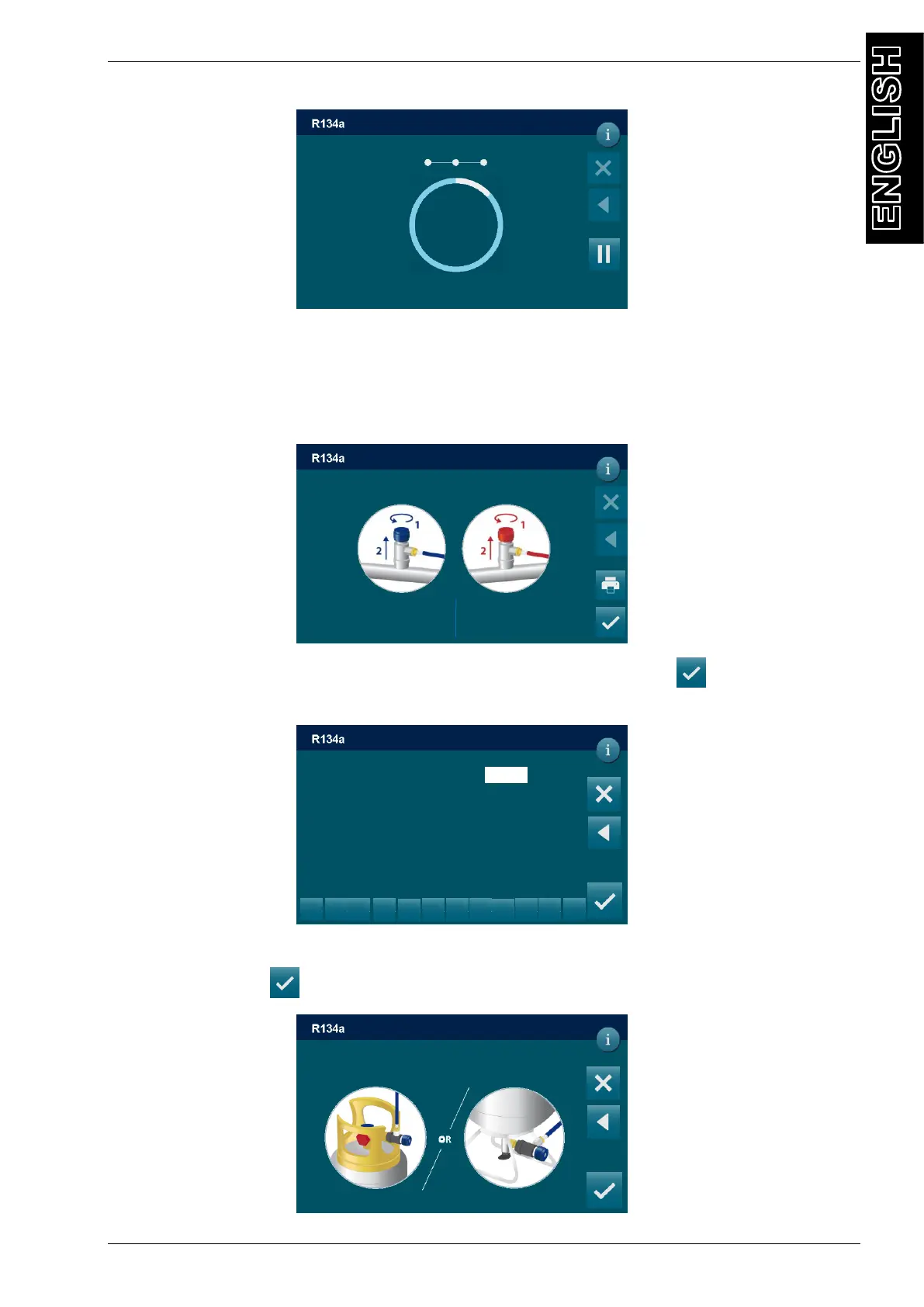 Use the touchscreen keys 0 to 9 to type the quantity (in grams) of refrigerant to be charged into