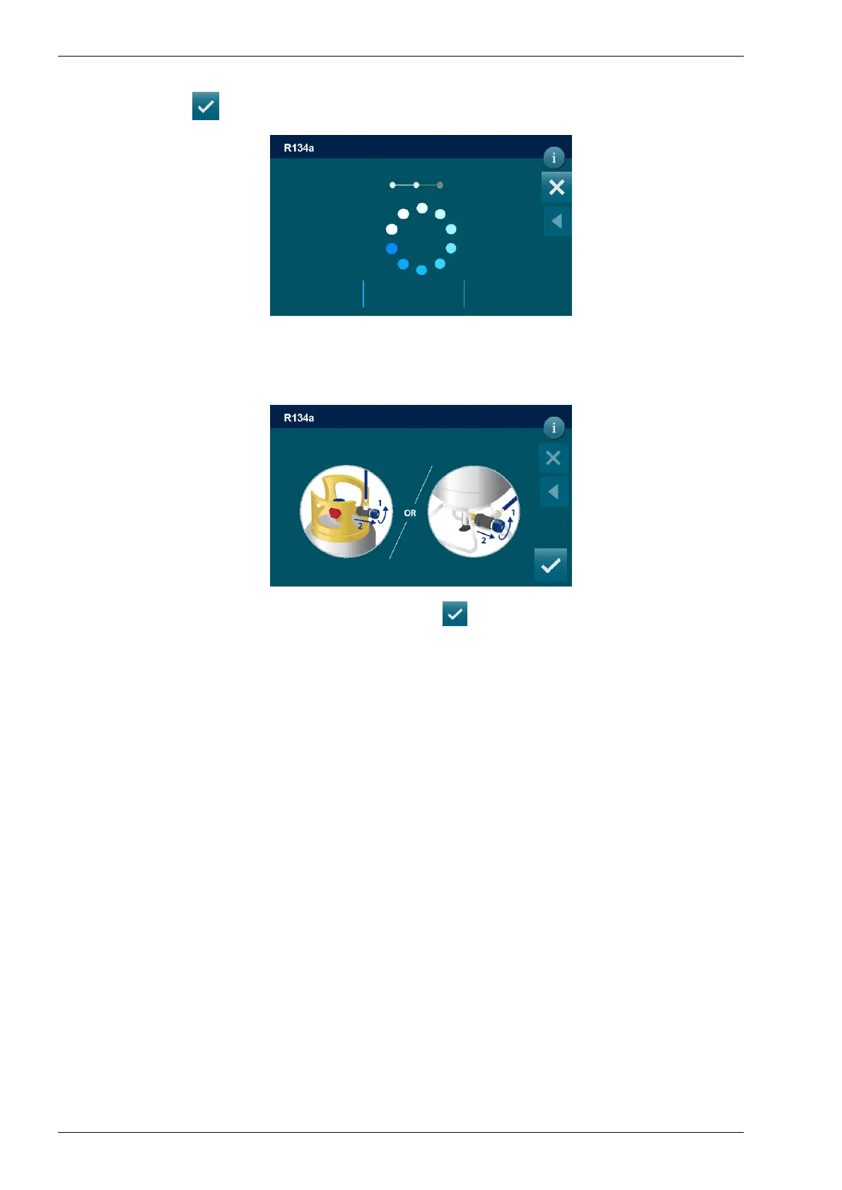 The machine will proceed automatically, displaying the quantity of refrigerant charged in the