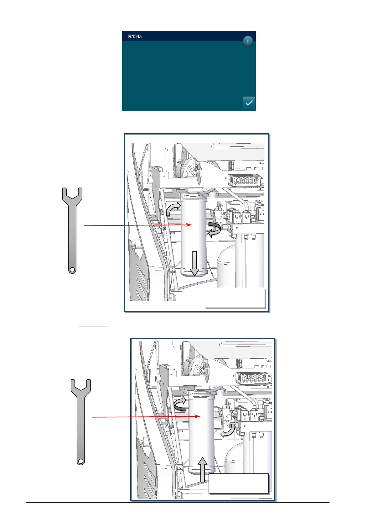 8) Remove the dryer filter, use the special wrench (ref Fig.15)