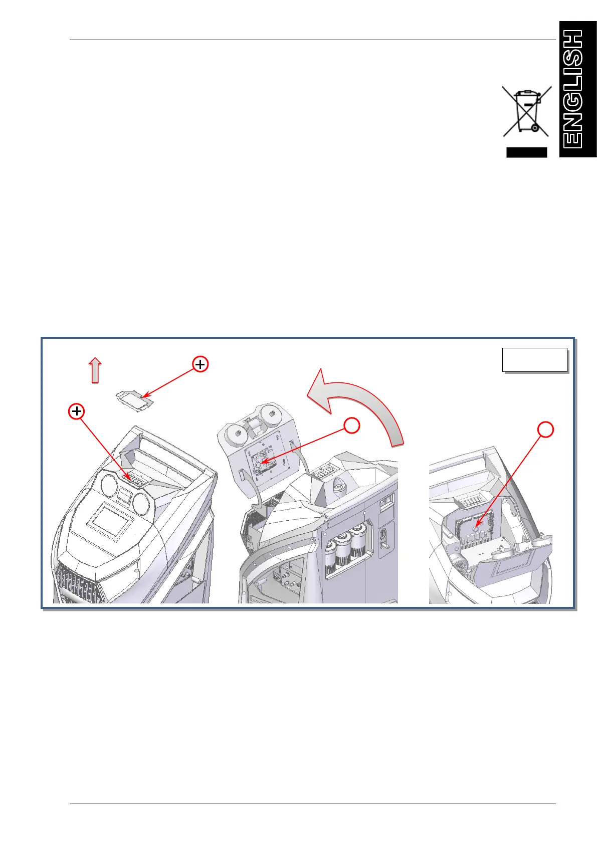 The machine uses an electronics card containing a Lithium battery (ref:1-2, Fig.2). When