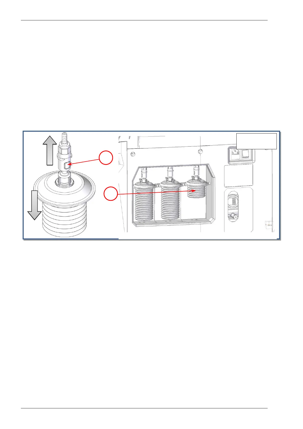 1. press the quick coupling button (ref 1, Fig.32) and disconnect the DYE cartridge (ref j,
