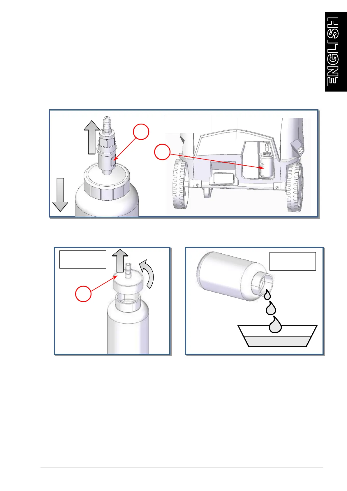 1. Press quick connection button (ref 1, Fig.33) to disconnect the used olio container
