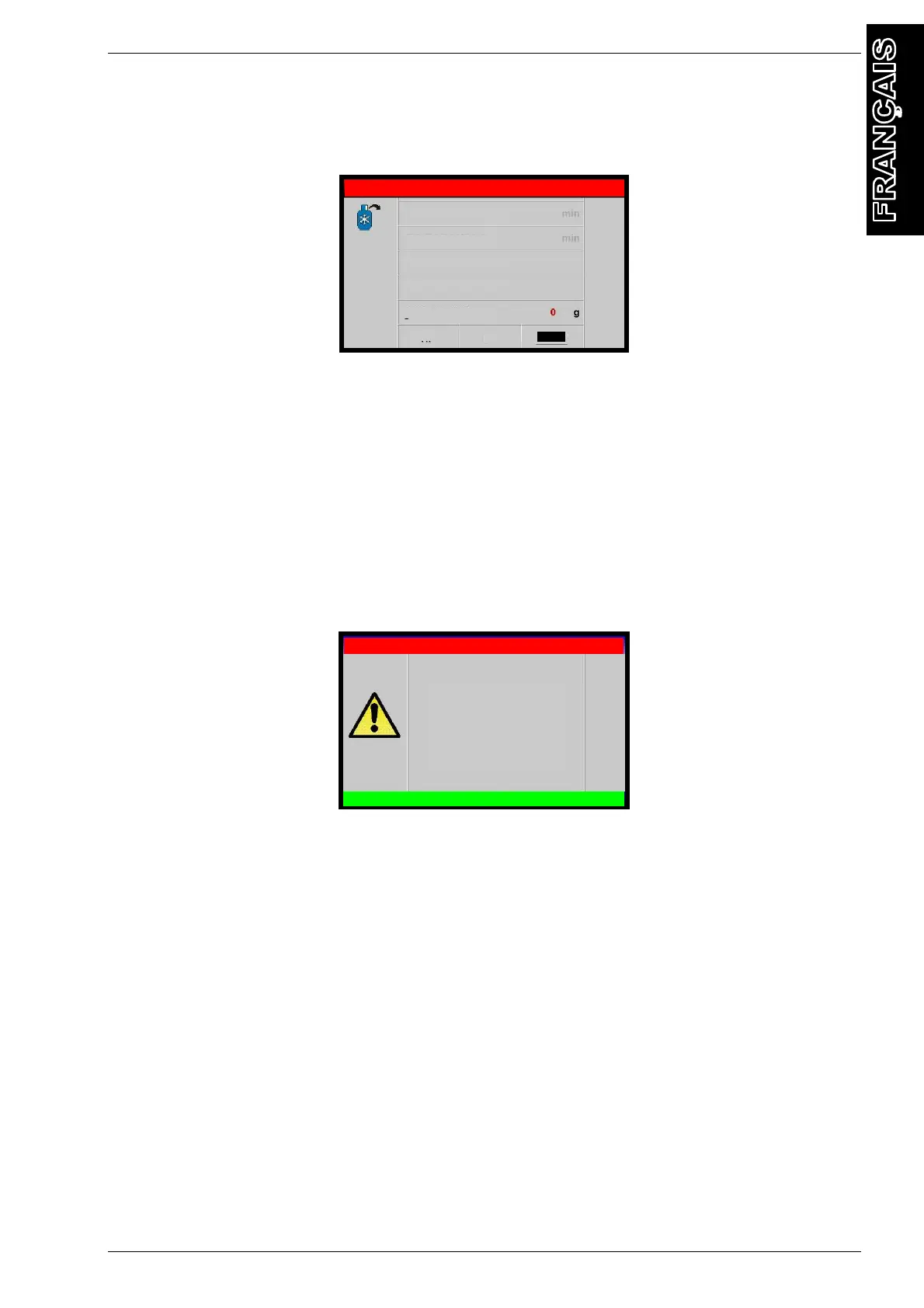 si le remplissage de gaz est inférieur à 100 grammes l'avertissement suivant sera affiché: