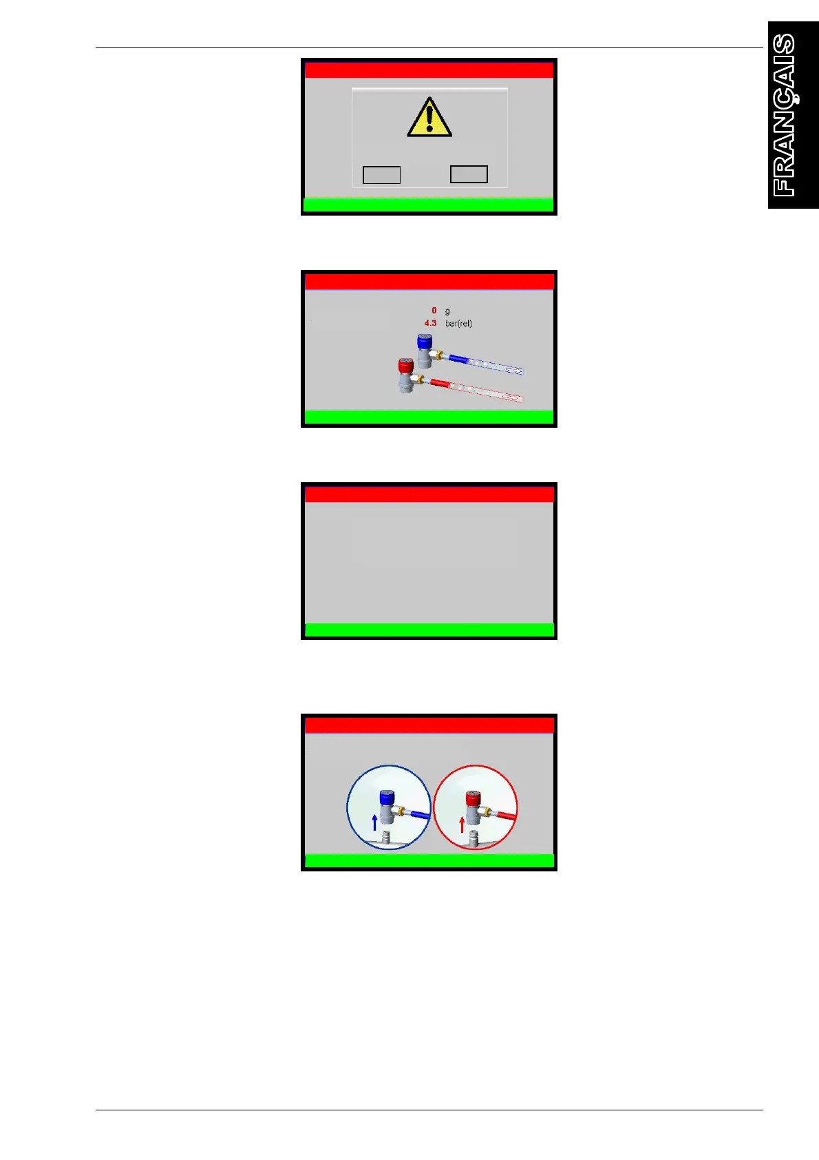 La machine récupère le réfrigérant restant dans les tuyaux flexibles de service, puis l'écran