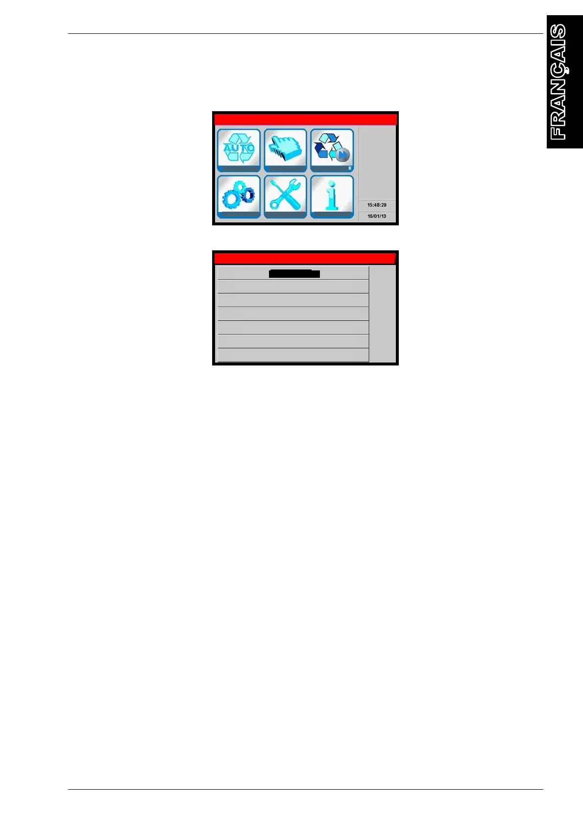 Sélectionner ENTRETIEN, l'écran suivant s'affiche: