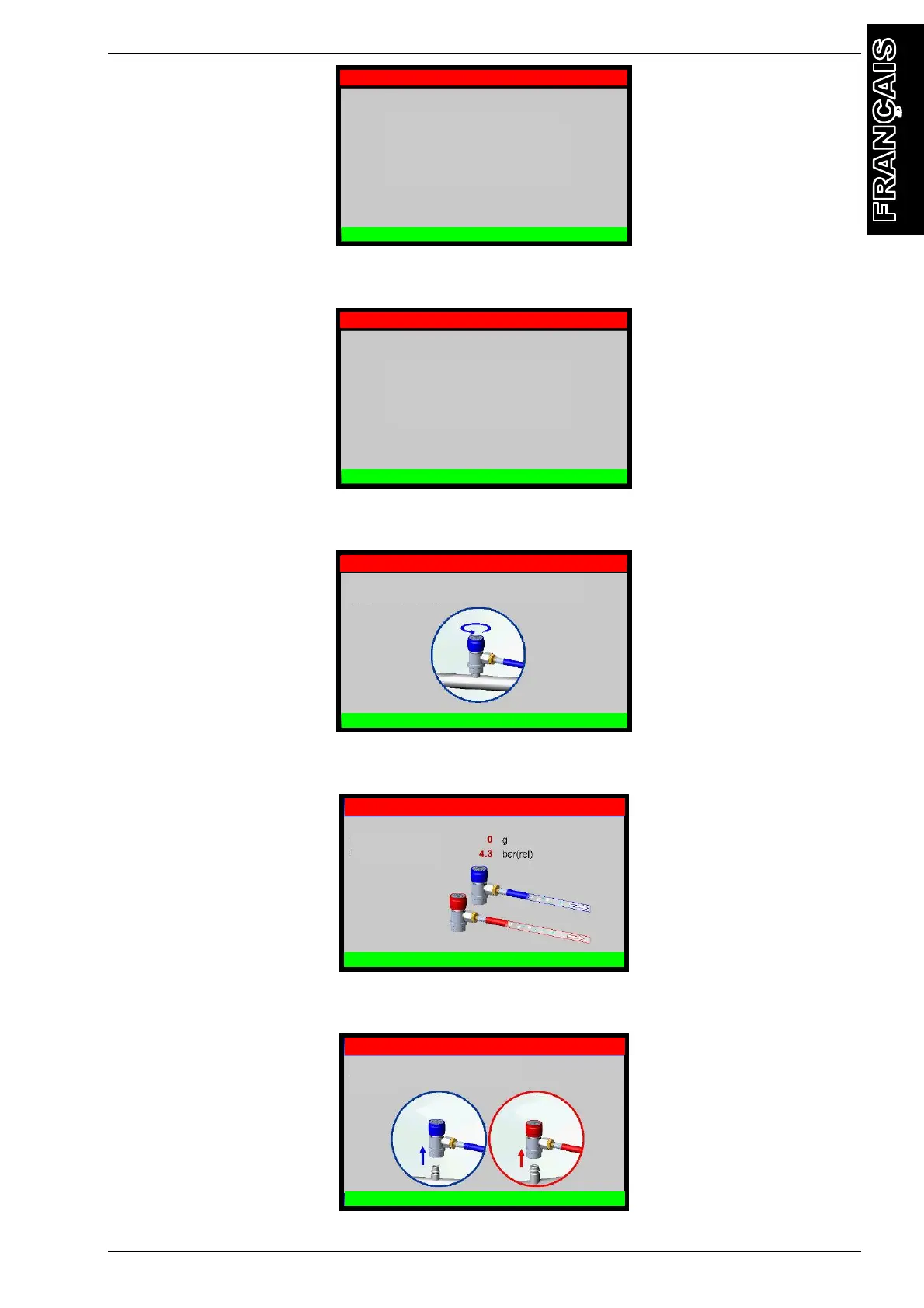 La machine récupère le réfrigérant restant dans les tuyaux flexibles de service, puis l'écran