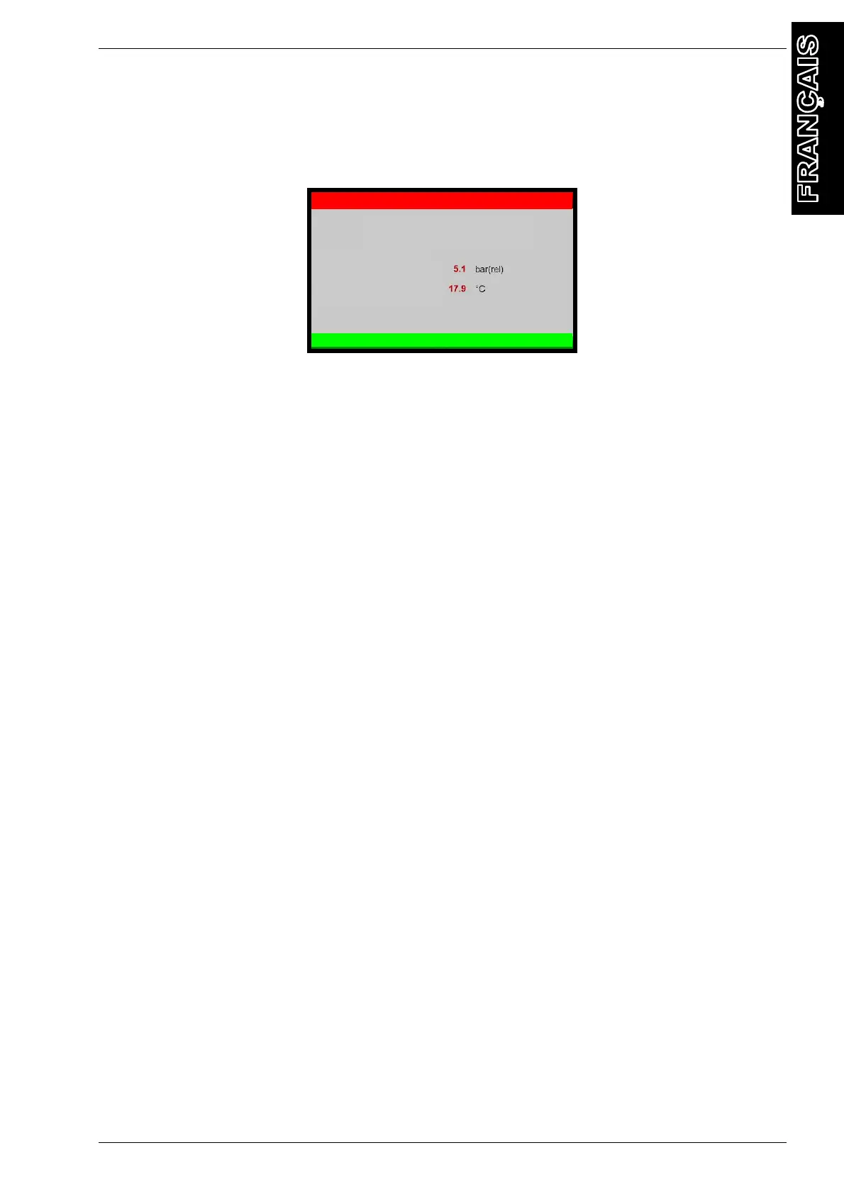 Sur ENTRETIEN, sélectionner PURGE AIR MANUELLE, l'écran suivant s'affiche: