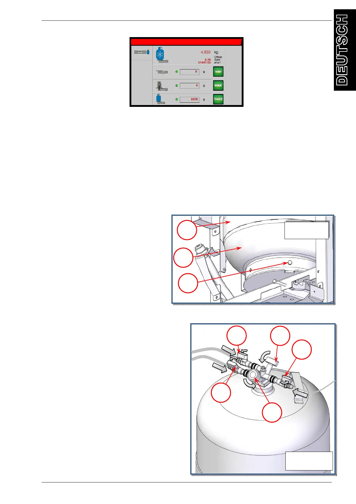 von dem Maschinenmodell) einzugeben: 9500 g für die 22l R134a Flasche oder 5800 g
