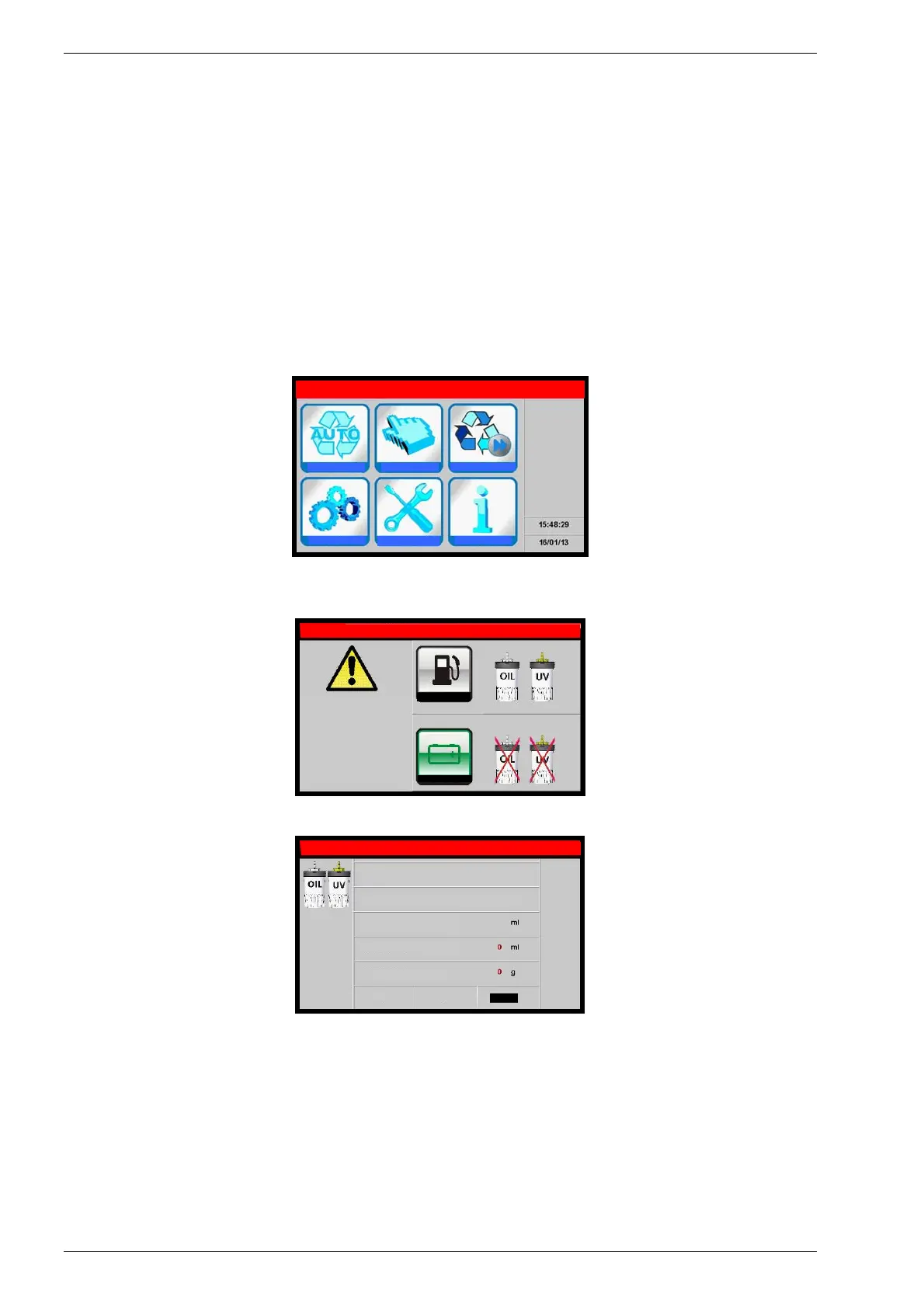 oil discharge, vacuum, new oil reintegration, and charging. The values for the quantity of gas