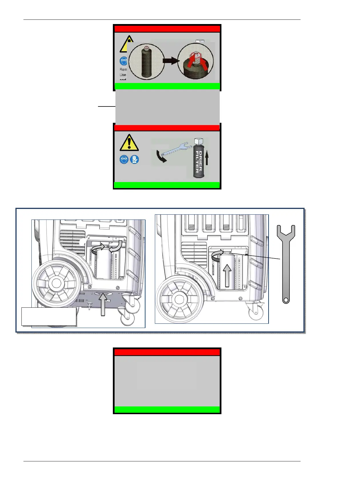 12) Den neuen Filter des Trockners einsetzen, dazu verwende man den Spezialschlüssel