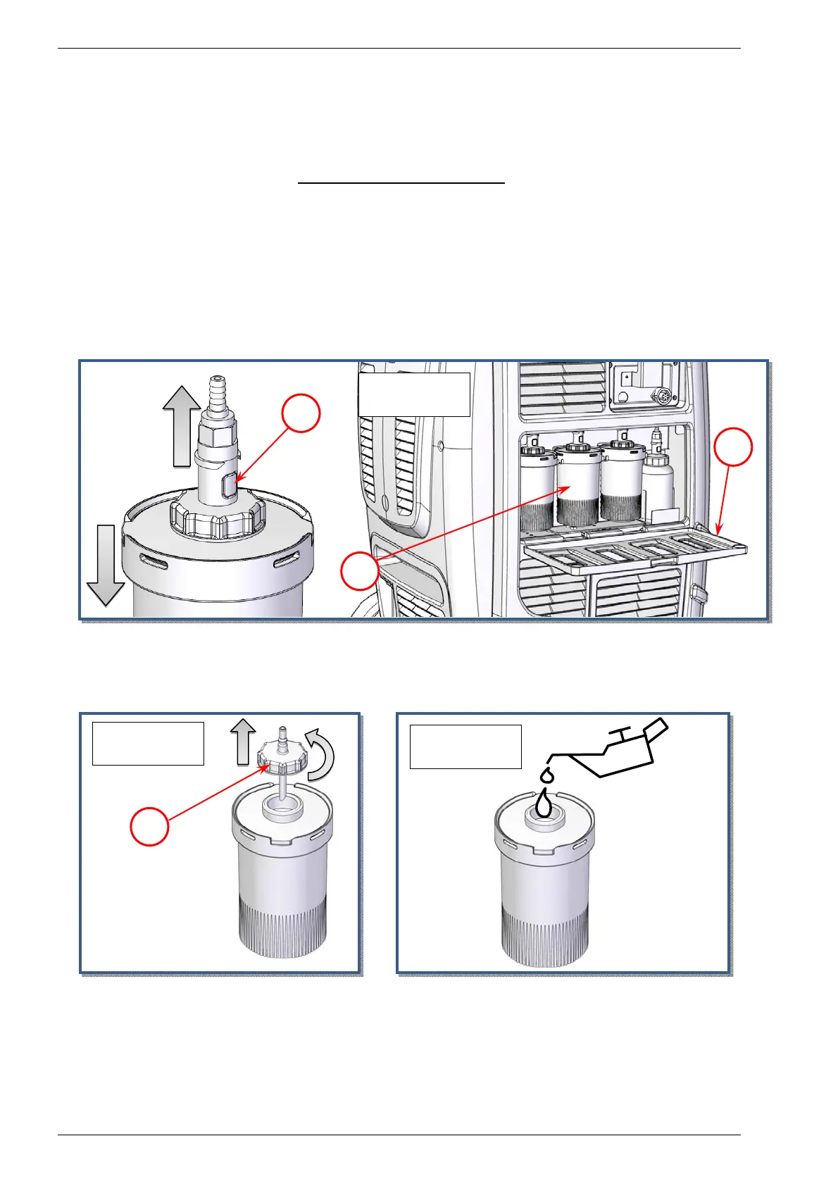 2. Man drücke auf den Schnellanschlussknopf (Bez. 1, Abb. 29), um den Ölbehälter