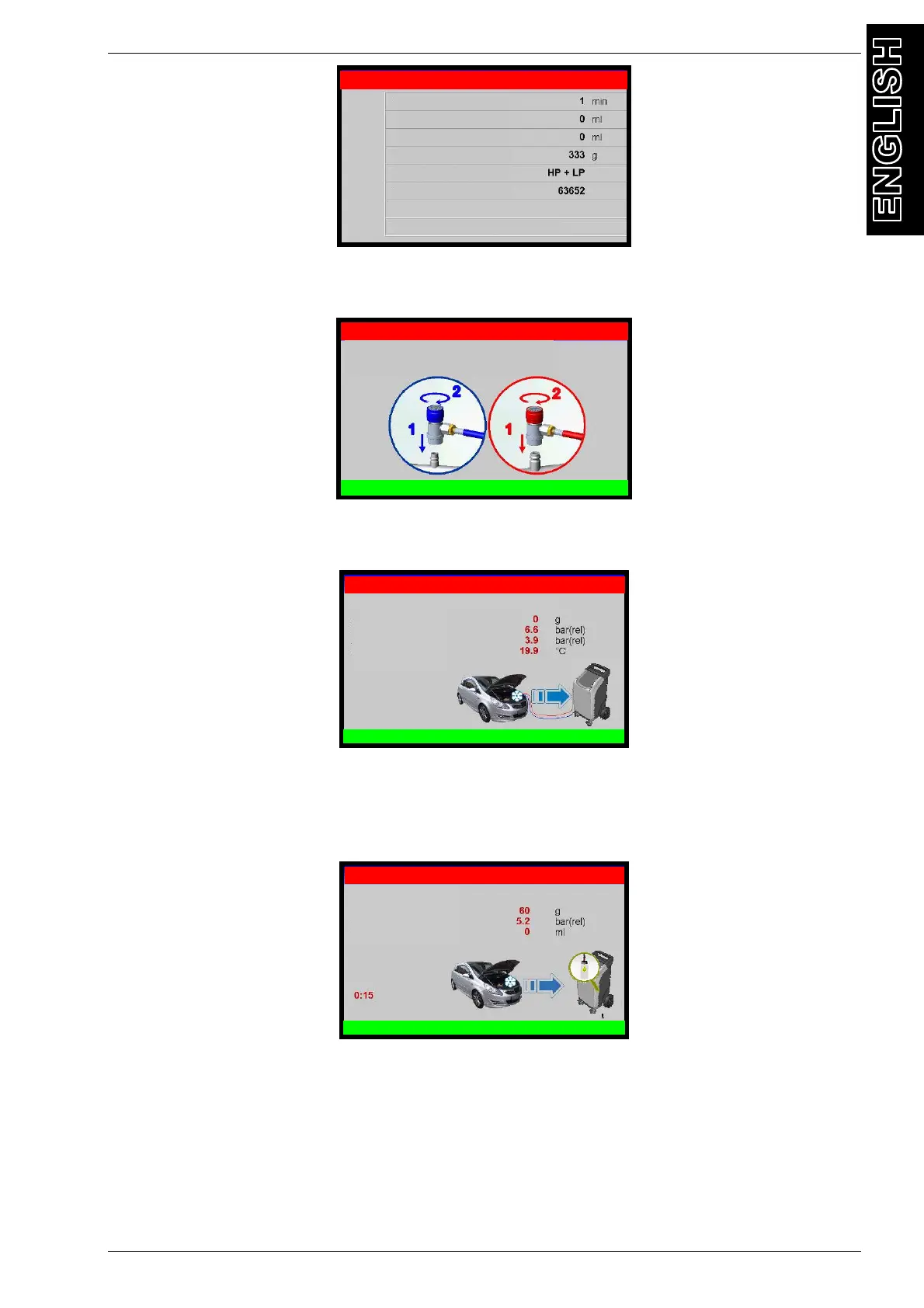 Connect and open the coupling to the A/C system, then press OK, press BACK to return back.