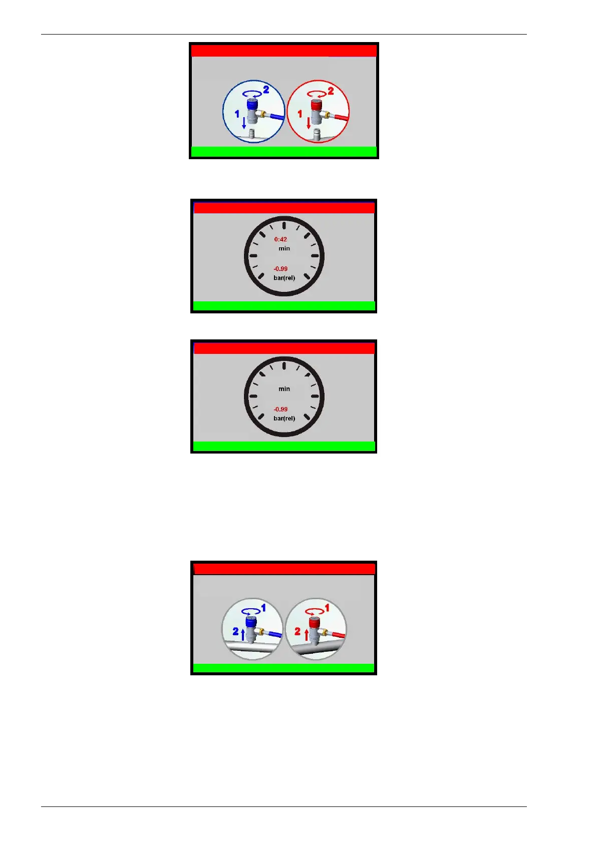 Connettere ed aprire gli innesti rapidi al sistema A/C, quindi premere OK per iniziare la fase di