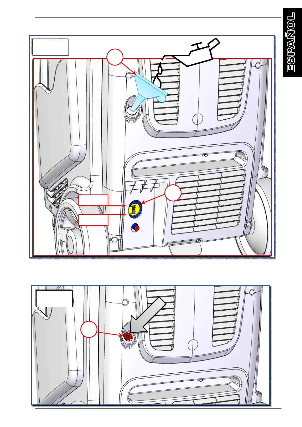 sucesiva, hasta que el nivel de aceite esté alrededor de ½ cm por encima de la marca roja del