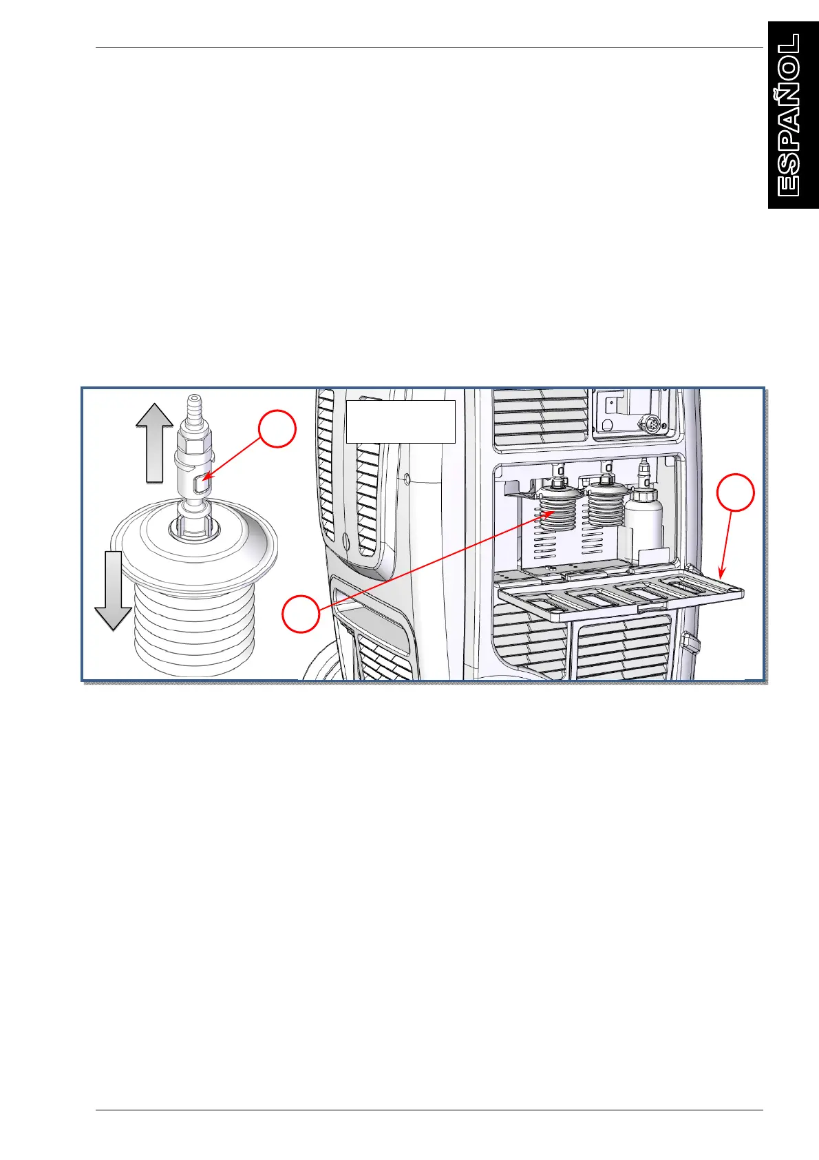 4. insertar el conector macho del nuevo cartucho de aceite en la conexión rápida y