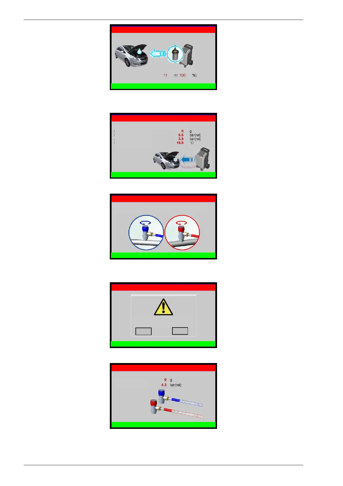 A máquina irá recuperar o refrigerante residual nas mangueiras de serviços, em seguida, a