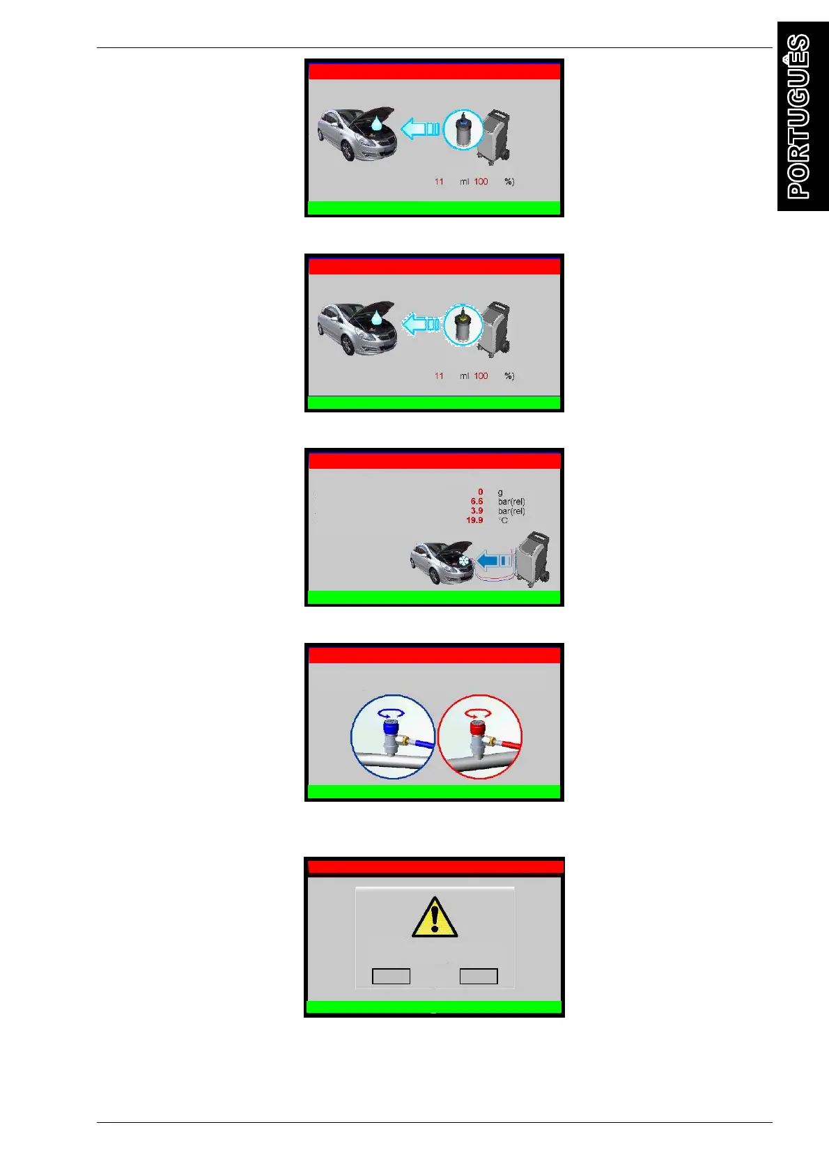 O óleo será injetado e, em seguida, se previamente selecionado, o UV será injetado.