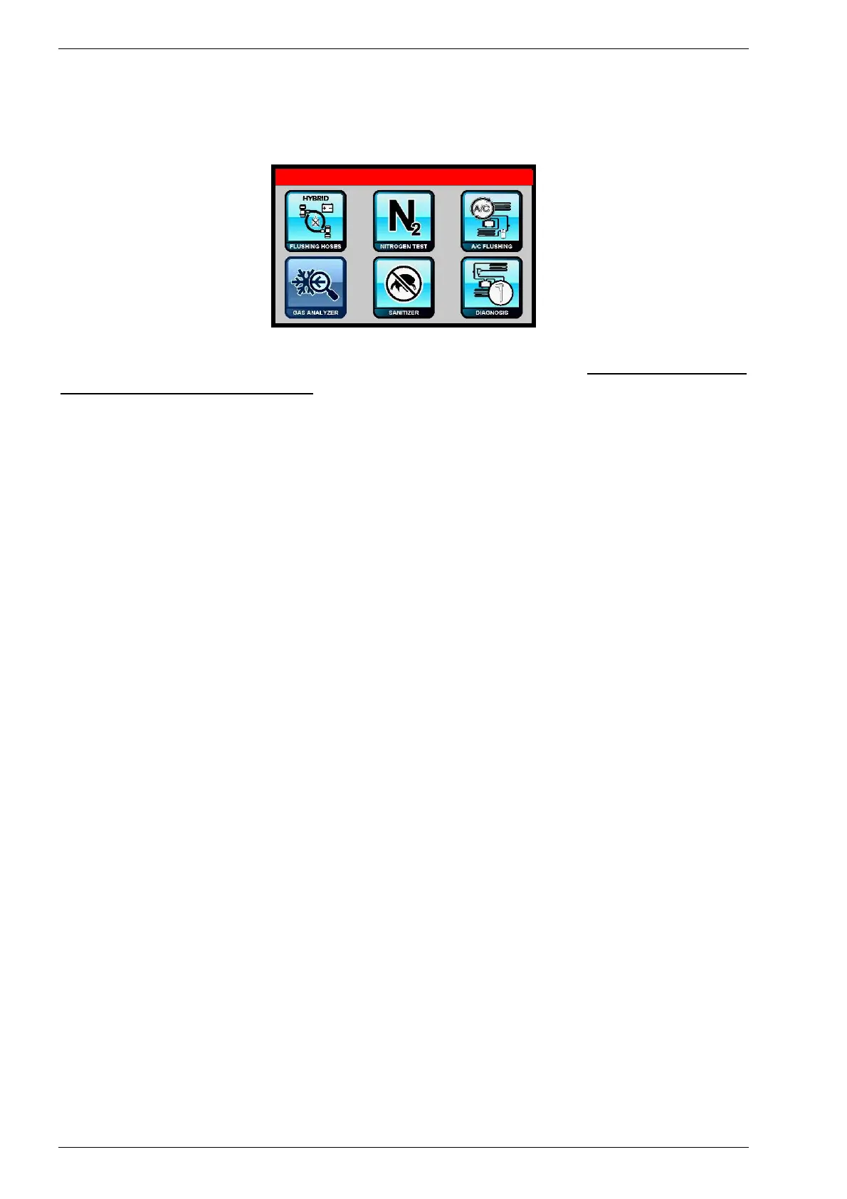 Em seguida, selecione GAS ANALYZER; se o analisador de gás estiver instalado,. a máquina