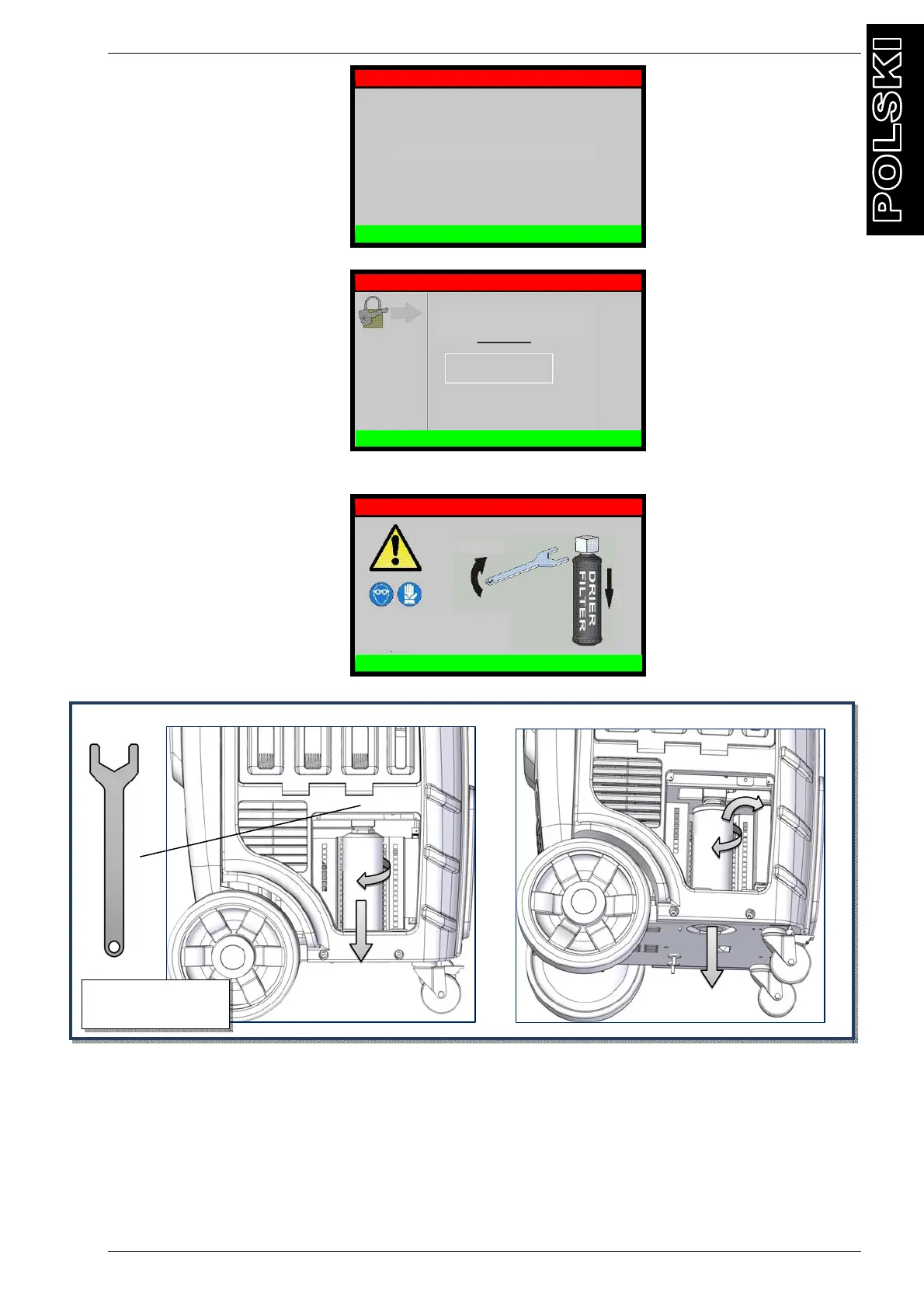 9) Zdemontuj filtr osuszacza, używając specjalnego klucza (patrz Rys. 18).