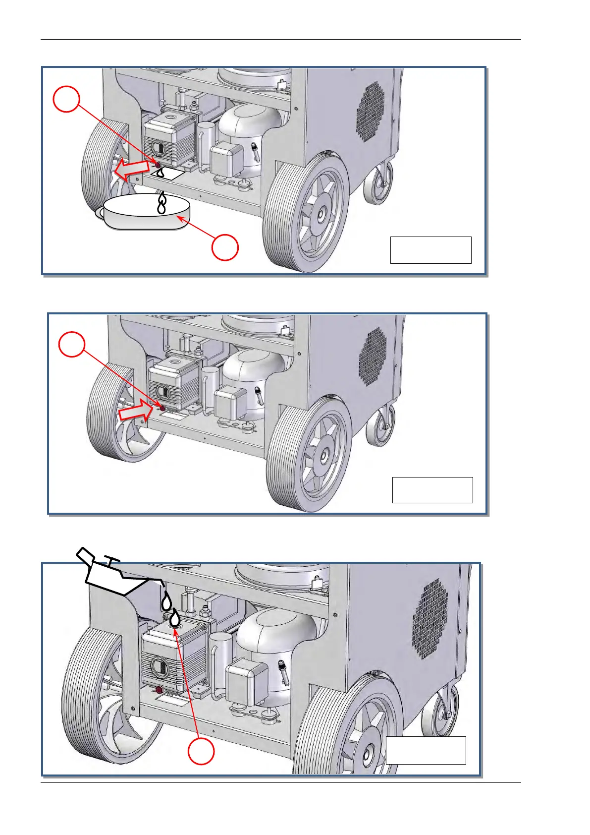 6) Allow all the oil to run out into a disposal container (ref 3 Fig.33) (with height < 10 cm).